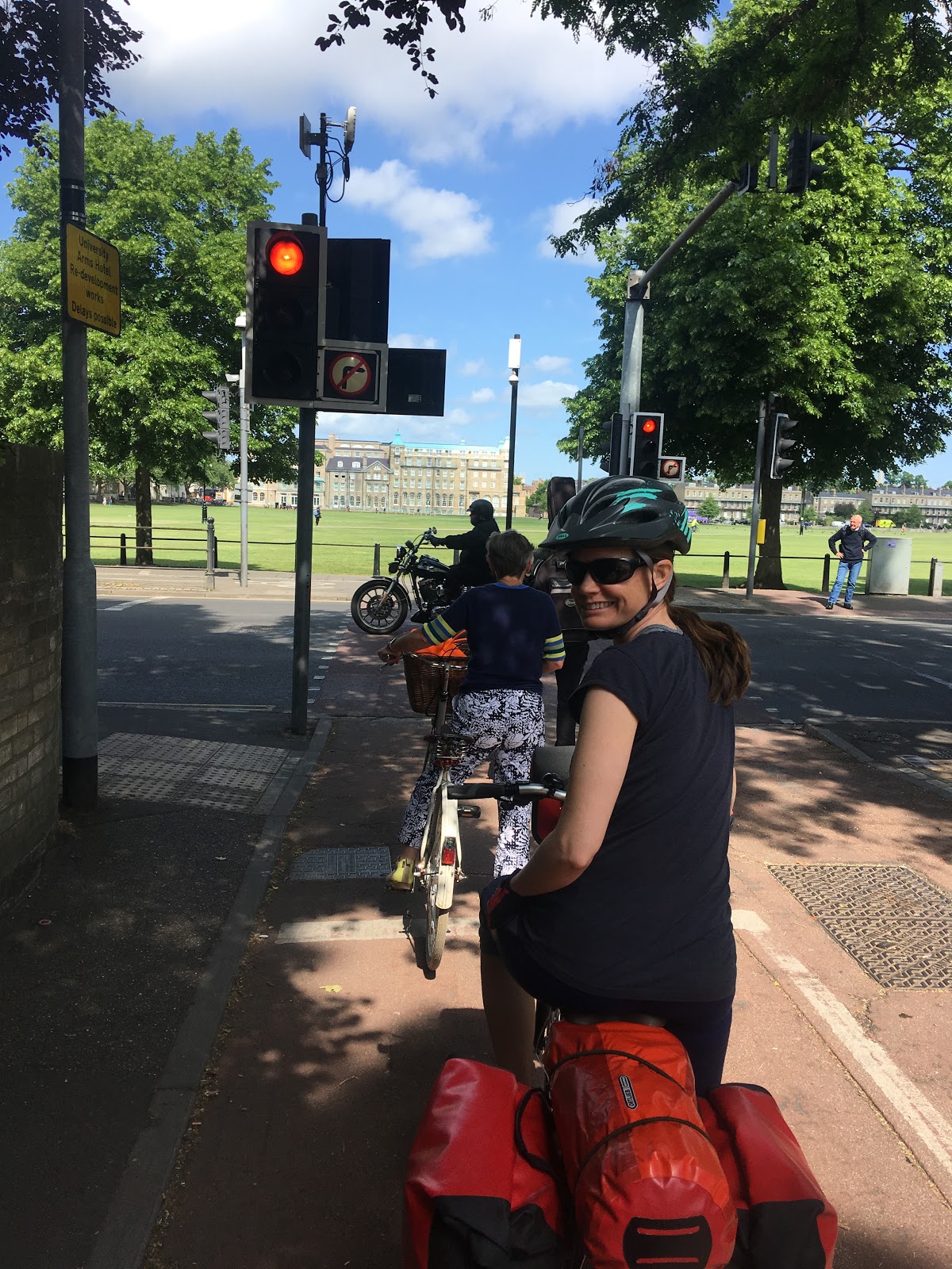 Being able to stroll across the street to a nice cafe to get breakfast was a really fun and novel way to start the days tour. The skies were blue again and it was lovely and warm too. Fed, showered and rested, we loaded the bikes and set off into the city streets…