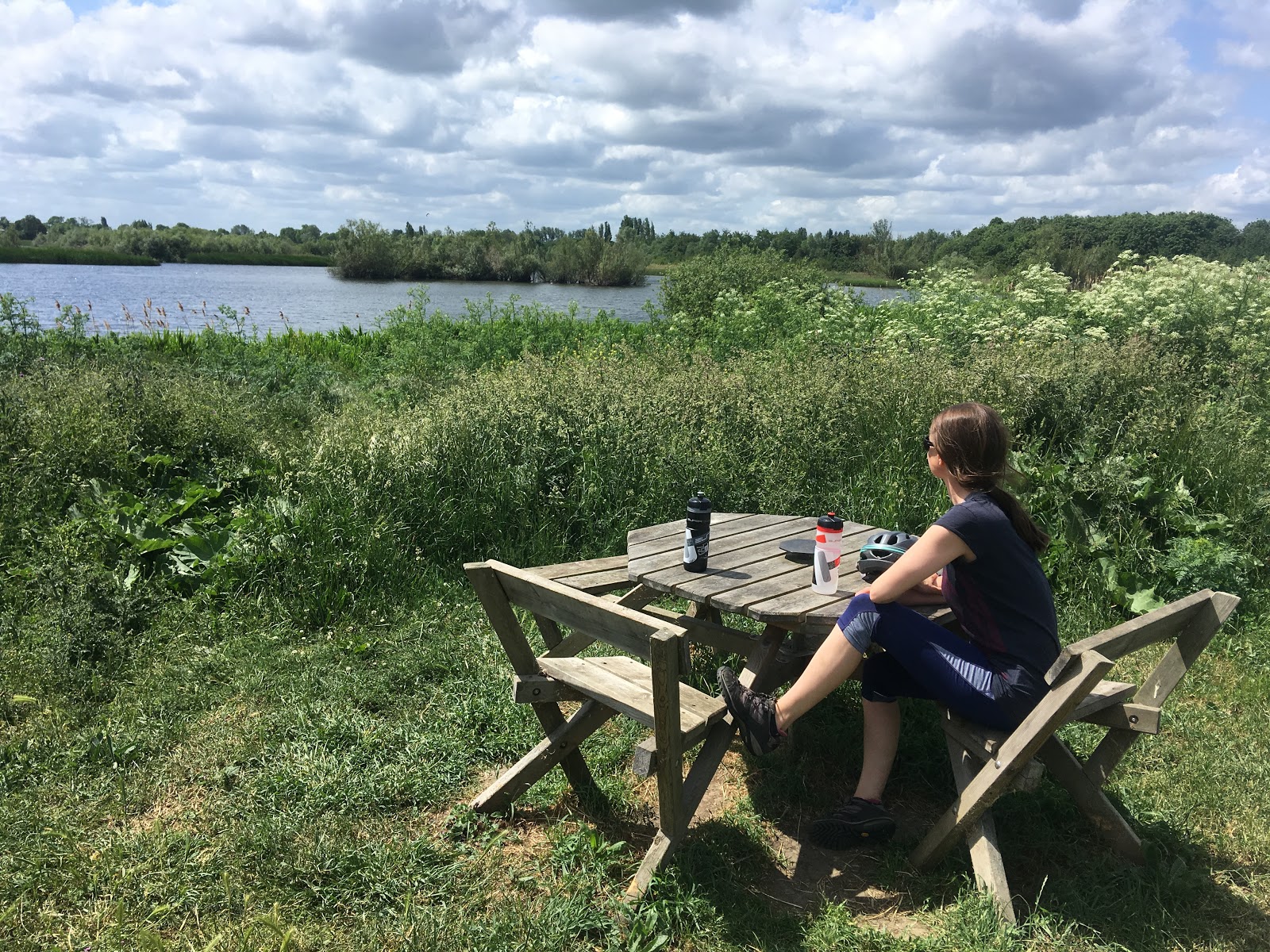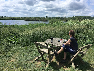 It was another tough headwind kind of a day, so we were glad to discover the RSPB reserve halfway along the route for a drink and a rest. Saw some Greebs and Terns.