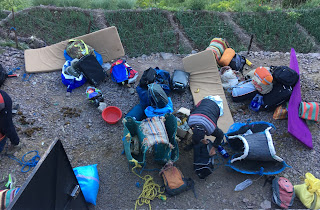 Up above the gorge were meadows where sheep were being taken to graze. We arrived at the hut at about midday. It’s much smaller, with a sleeping platform for about 20 people. Mint tea was soon served and shortly after another hot meal and salad! Much better than our usual packed lunch! And we didn’t even have to carry it.