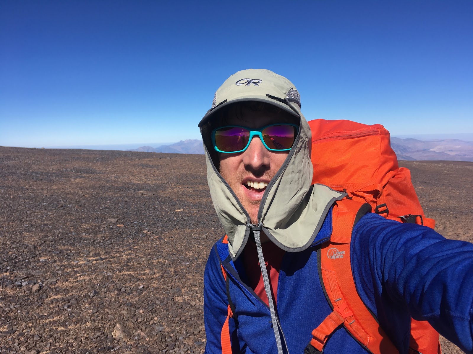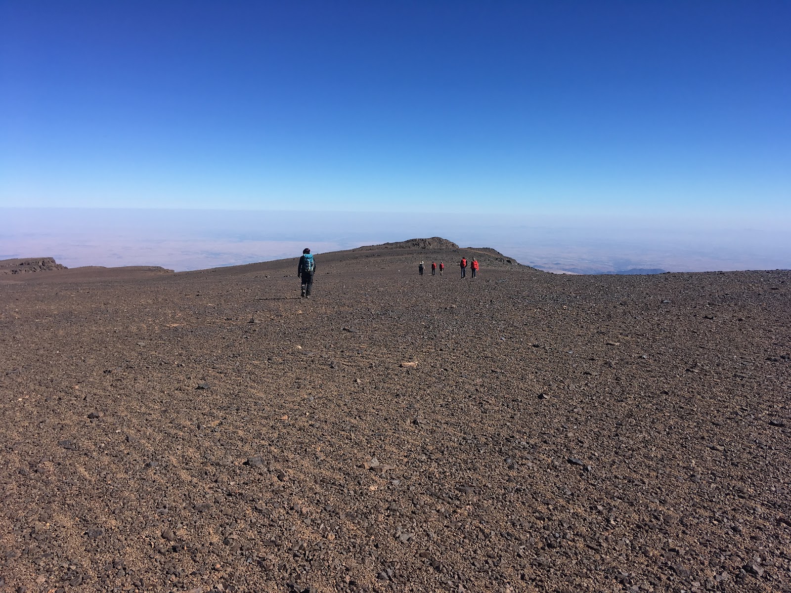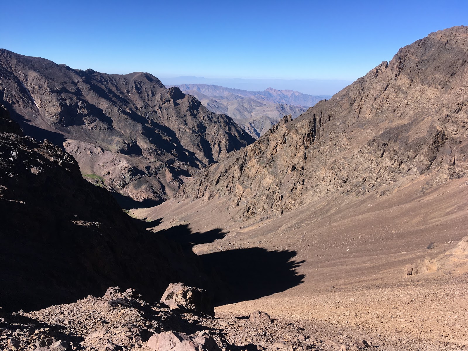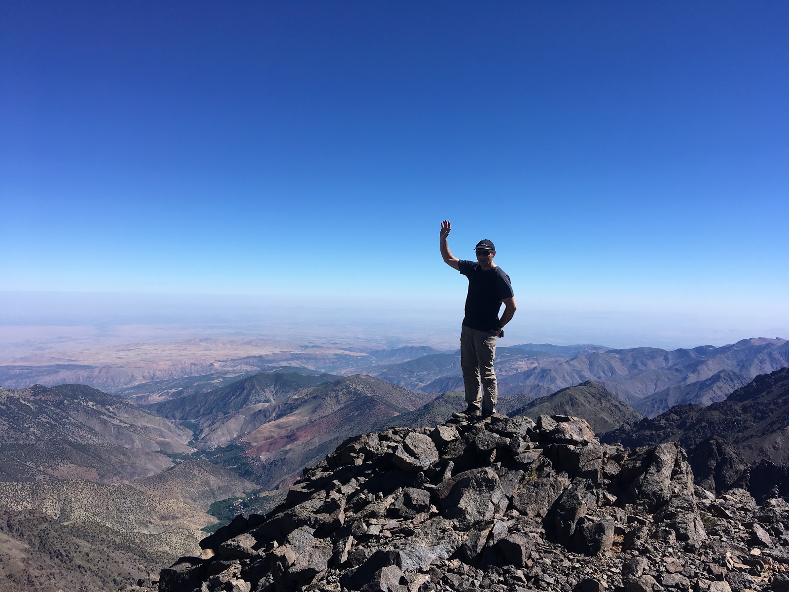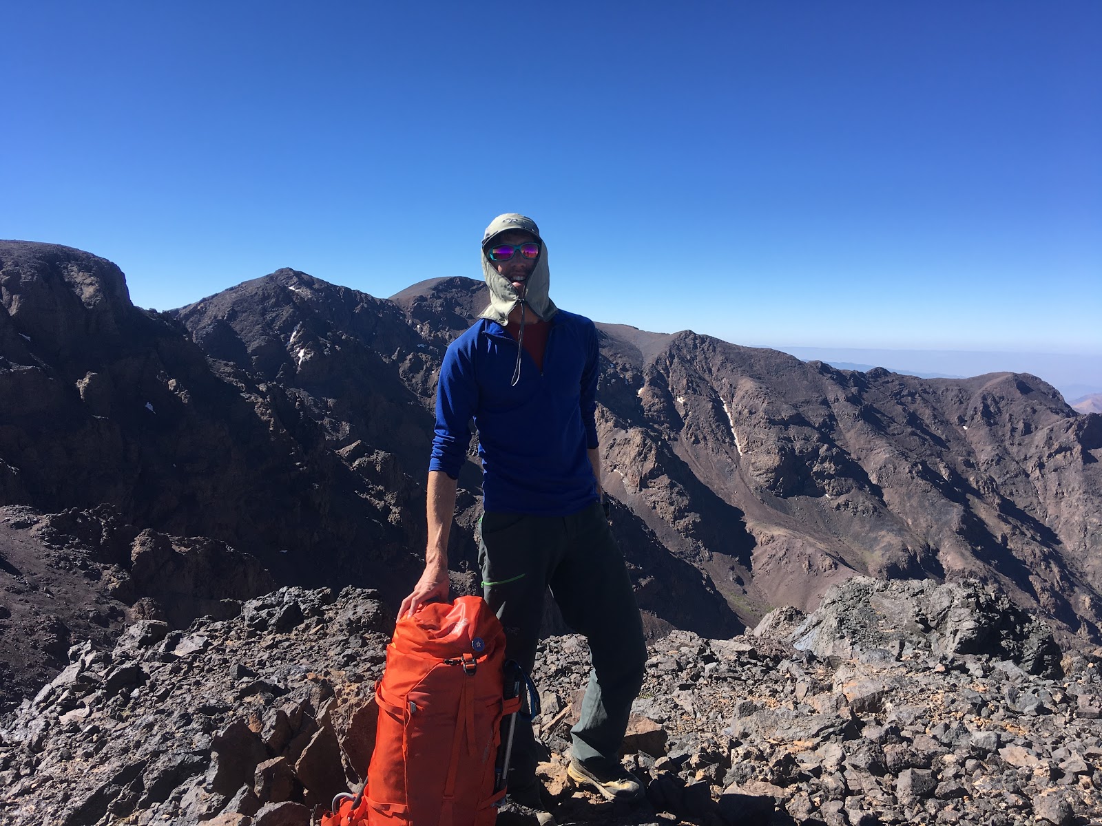 Views from the pass were tremendous. From there, about twenty minutes of interesting scrambling saw us up at the summit of Tazarhart. The summit is on the edge of a huge gently sloping plateau, which was an extraordinary feature. (A bit like an enormous Ben Nevis summit, if you’ve ever been there?).