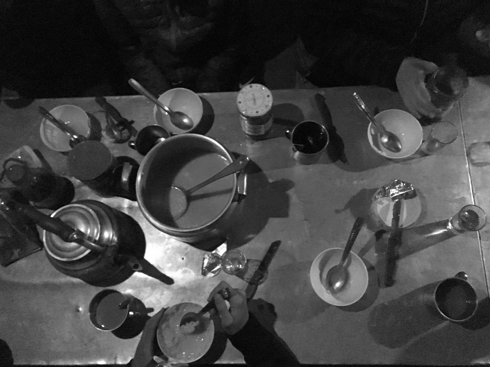 Back at the hut, there was a feeding frenzy as mint tea, popcorn and something resembling flat churros and jam were served up.