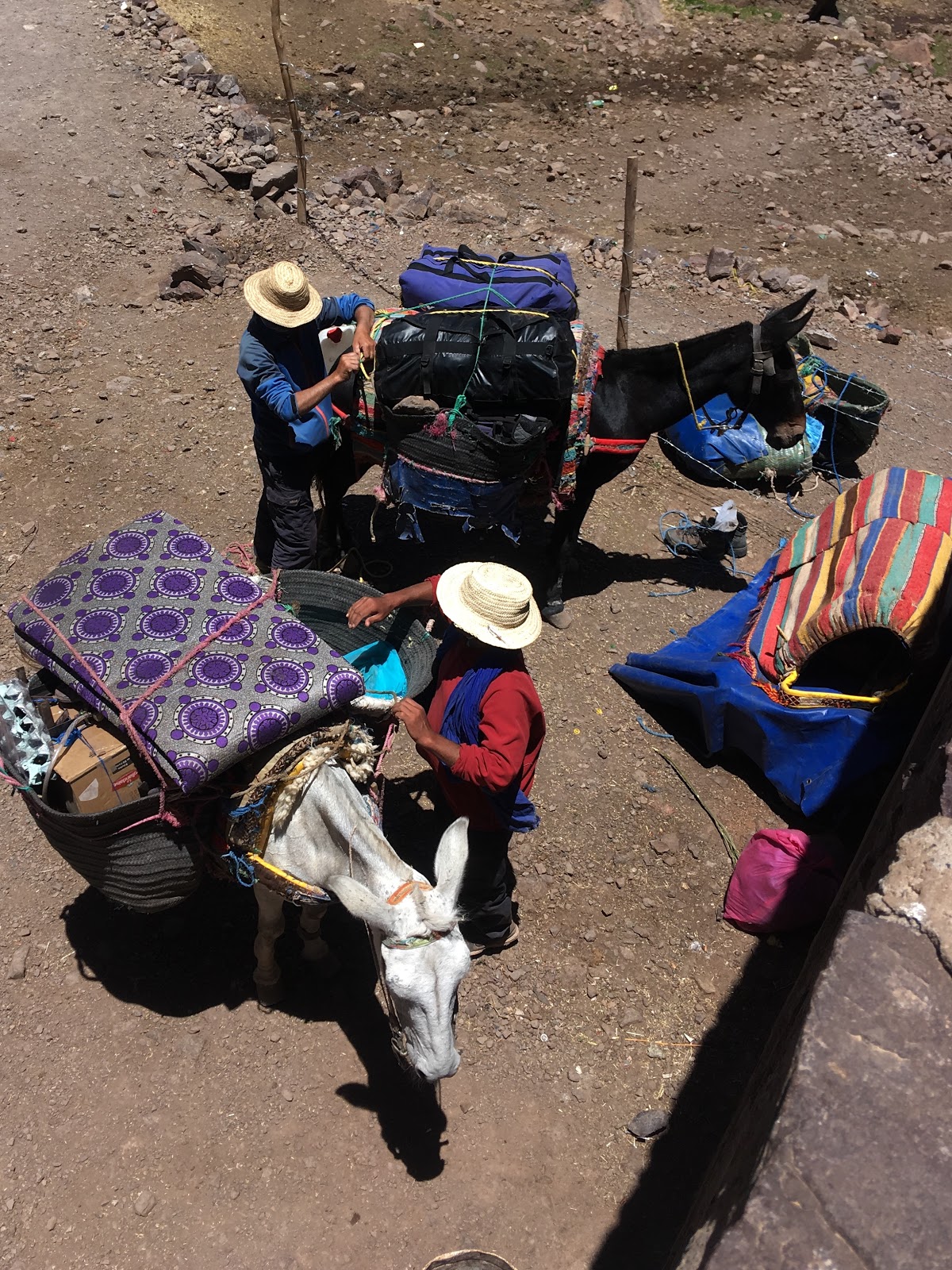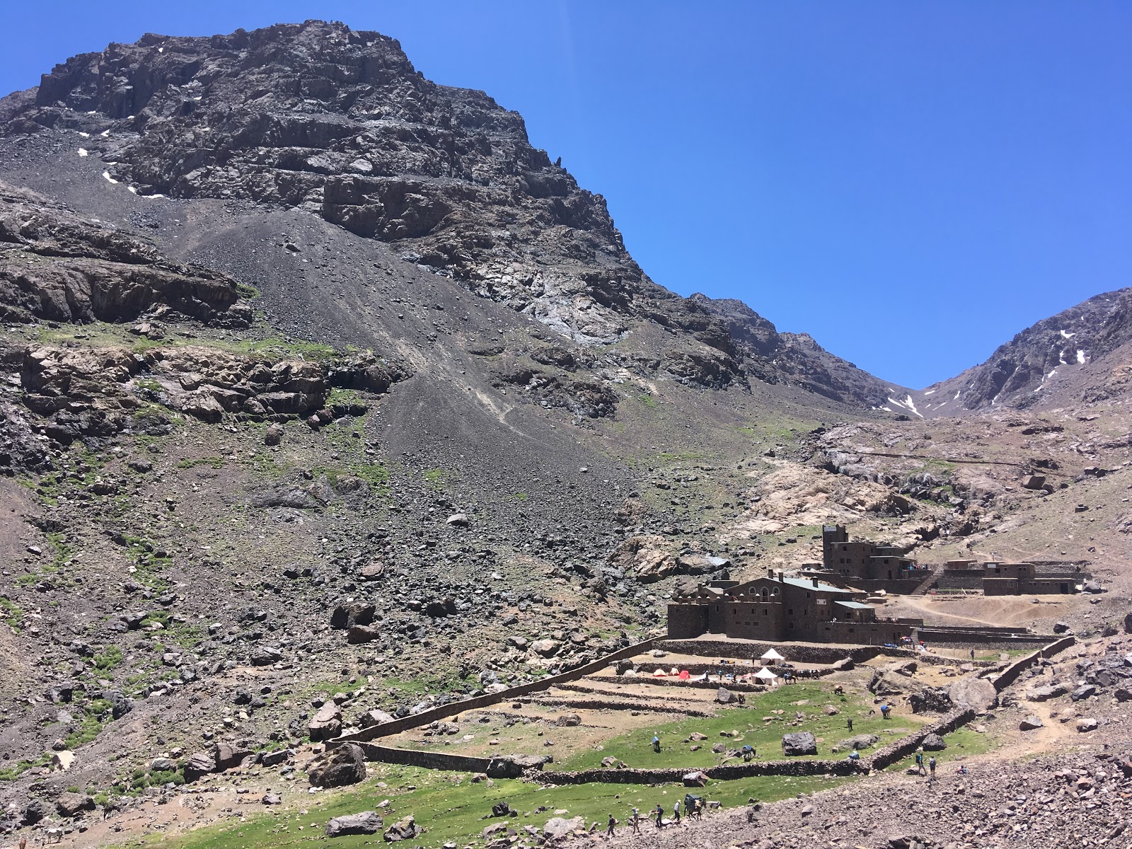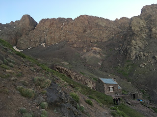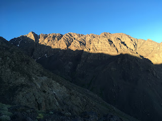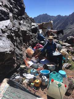 The Toubkal Refuge/Basecamp was as expected. Teeming with people, mules, cooks, tents and guides. Our guide was very proud to announce that showers and luxury was available here, but I had a much nicer experience in the sun kissed waterfall yesterday compared to the dark cold and pretty skanky feeling hut shower. The water was ice cold but it was still nice to freshen up.