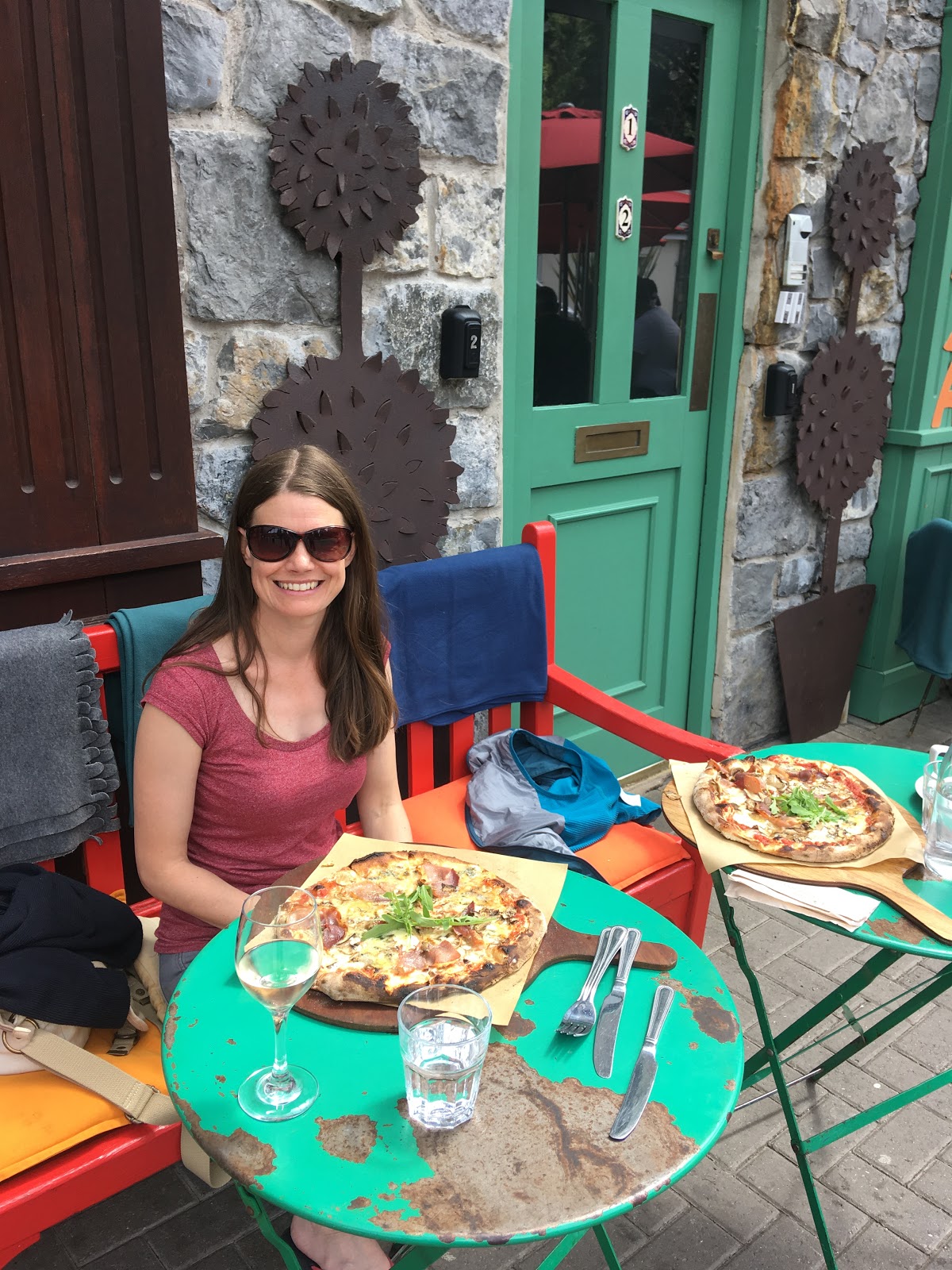 It was wonderfully warm, so we sat outside and enjoyed fresh Pizza while reminiscing over the many years of college lecturing and making plans.