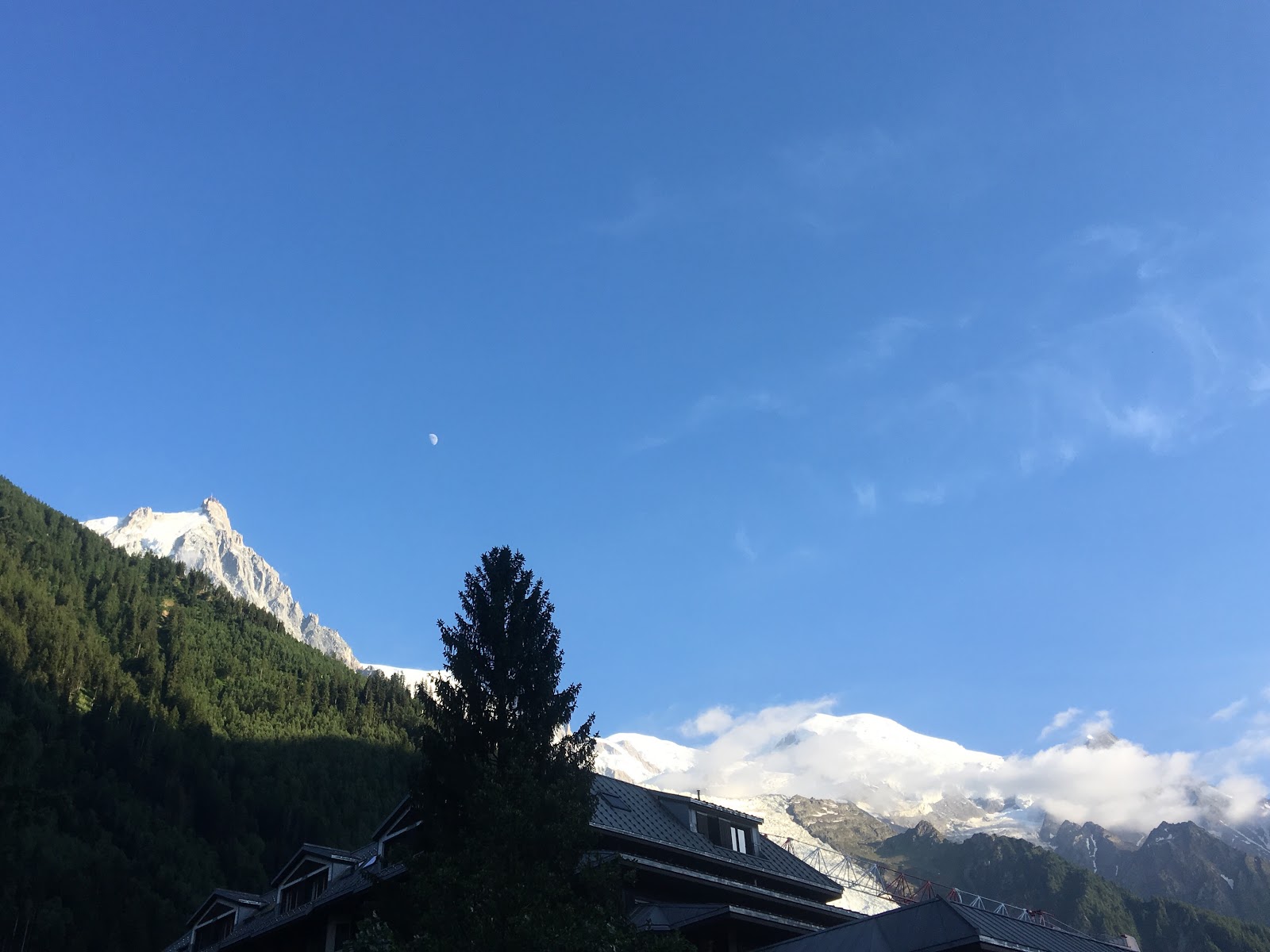 The view from the outside terrace is incredible and looks straight up at the Aigulle du Midi (on the left) and Mt Blanc (on the right). The Glacier Bossons comes almost down to the village!