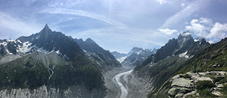 And to our right, the Mer de Glace (also known as the Vallee Blanche famous ski run), drew our eyes up towards the north face of the Grand Jorasses.