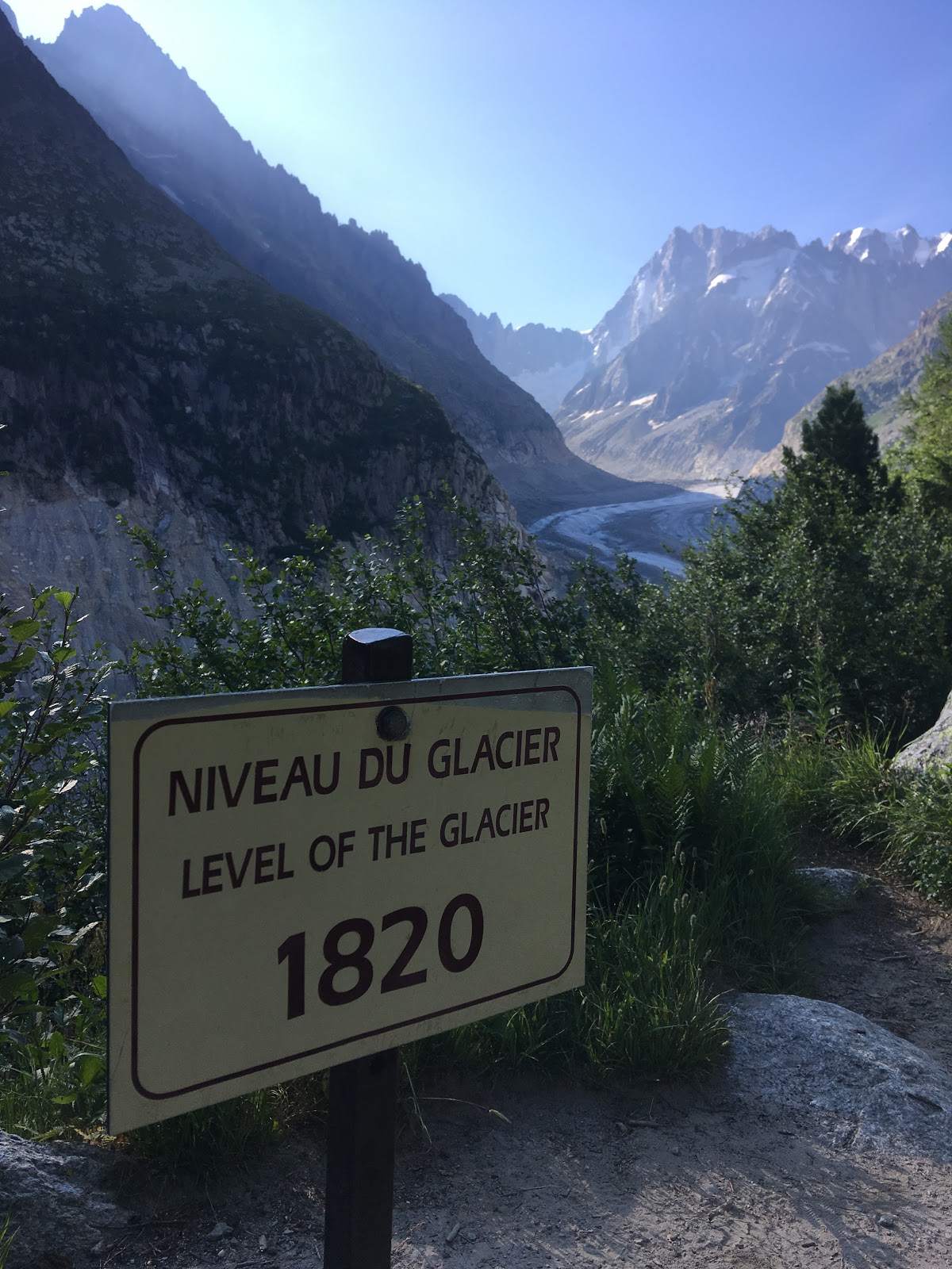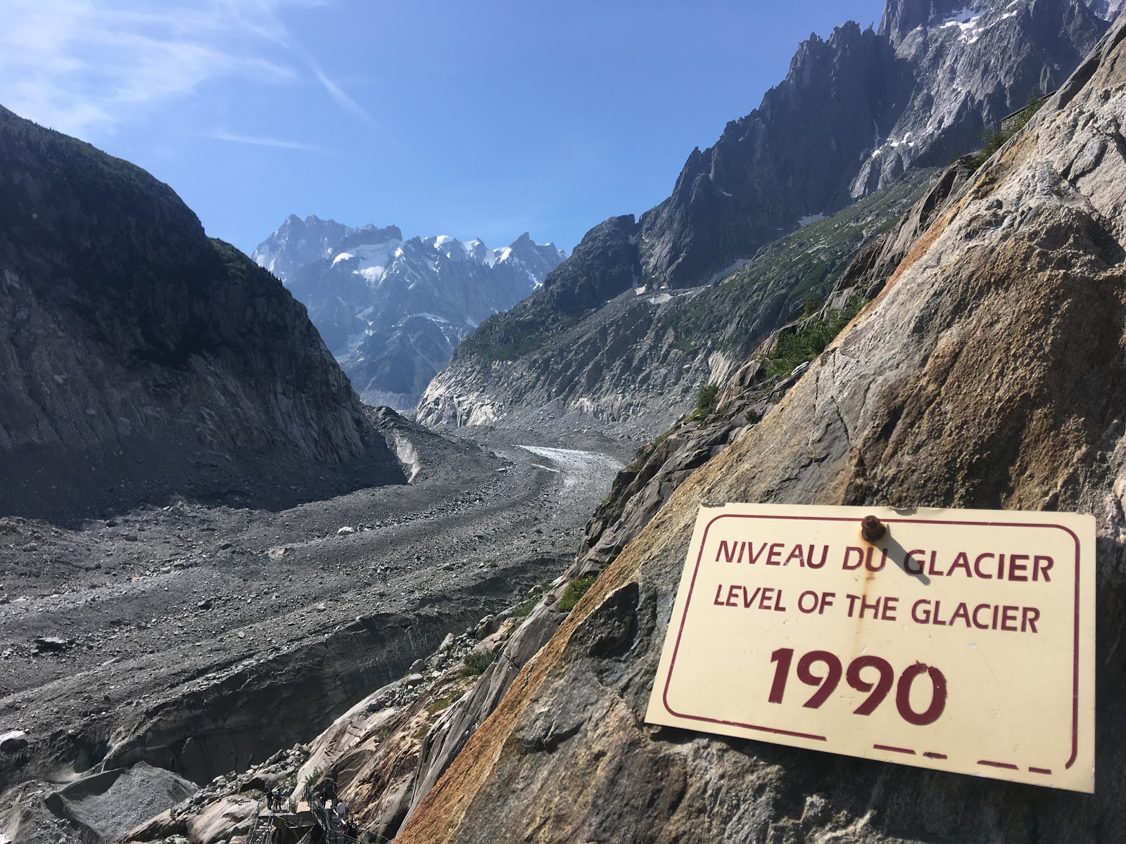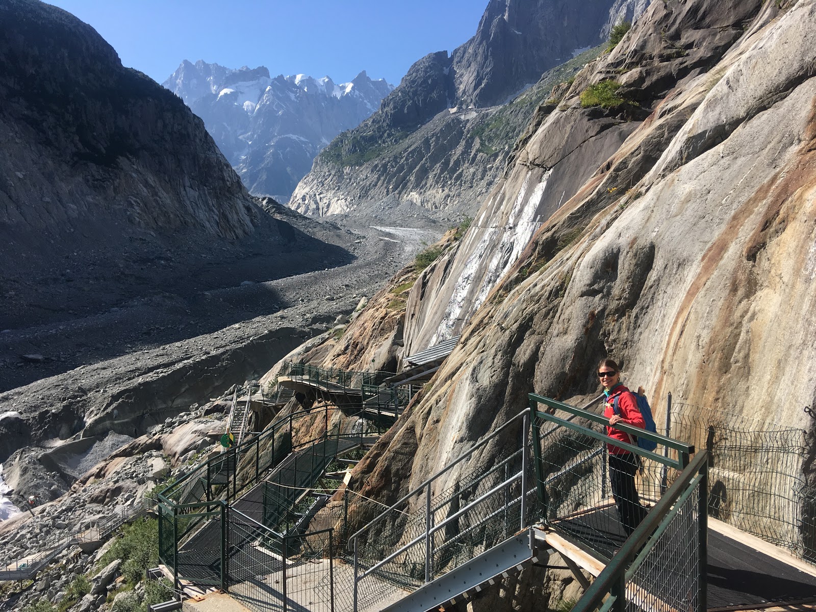 In 2001, Daragh and I stepped off our skis at this point, having descended the Vallee Blanche – now there are 400 or so steps bolted onto the cliff side to access down to what’s left of the glacier!