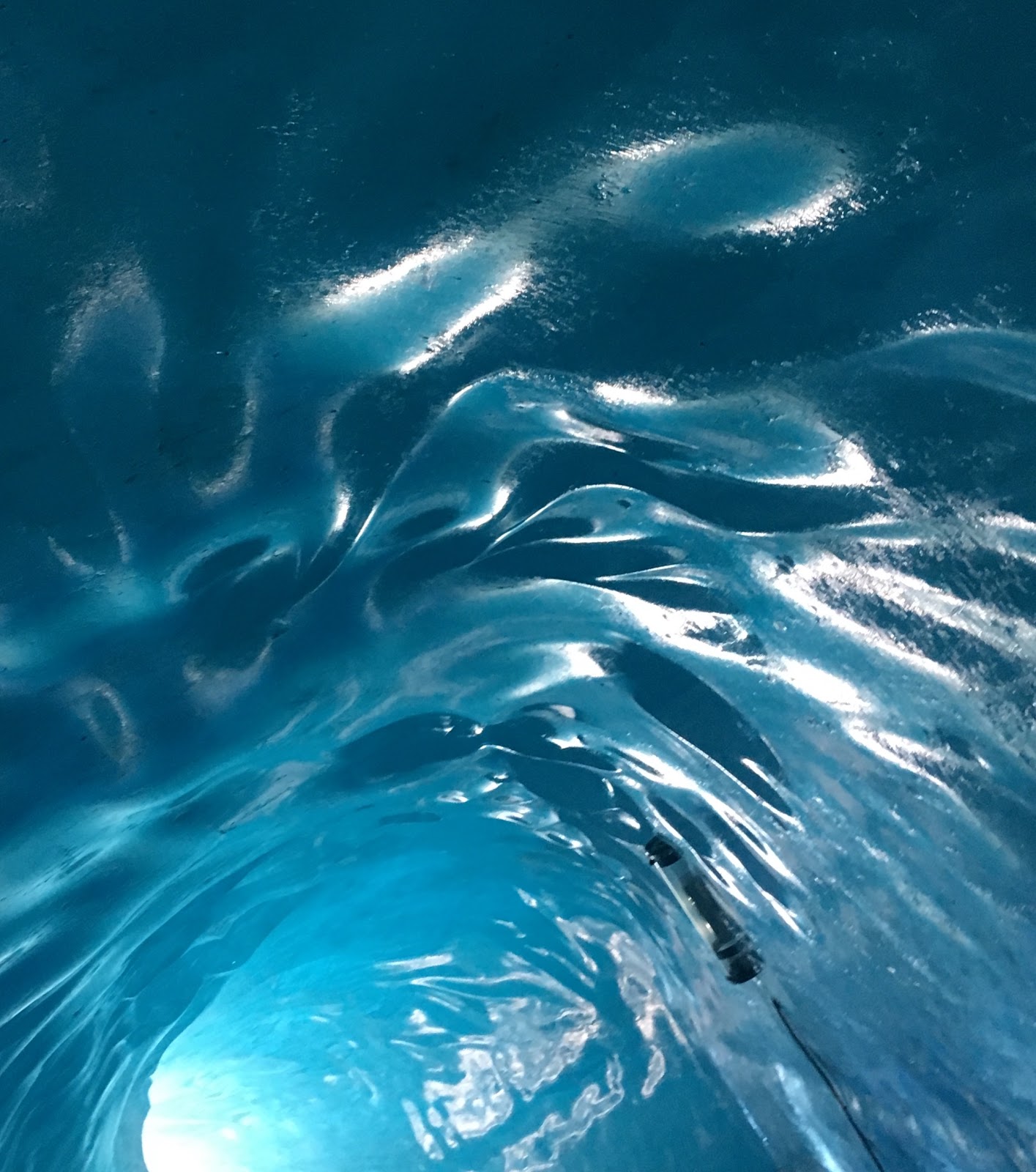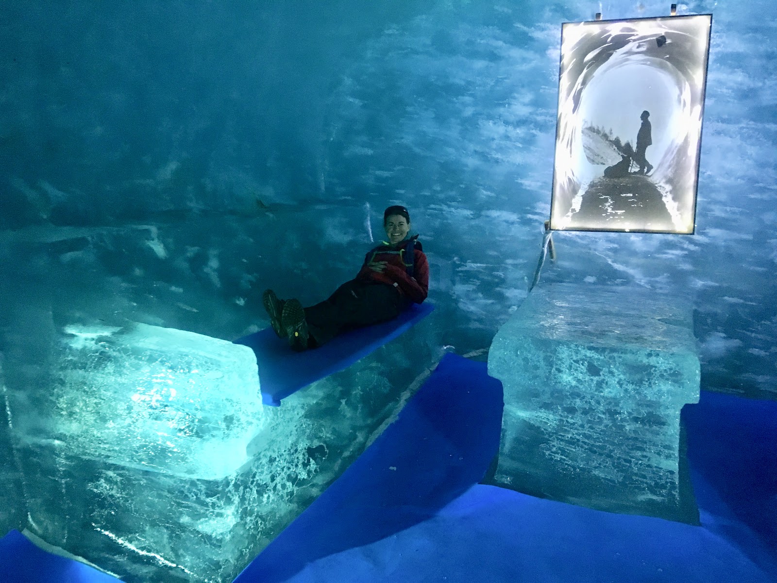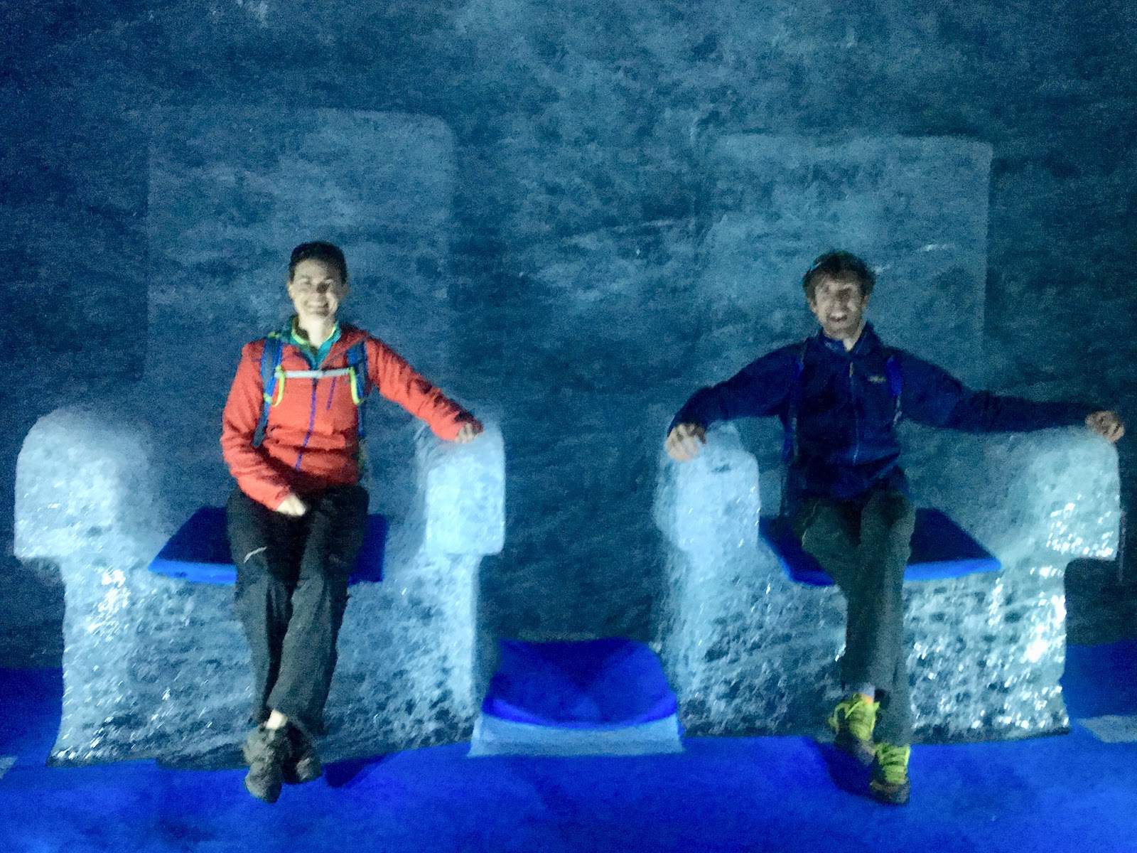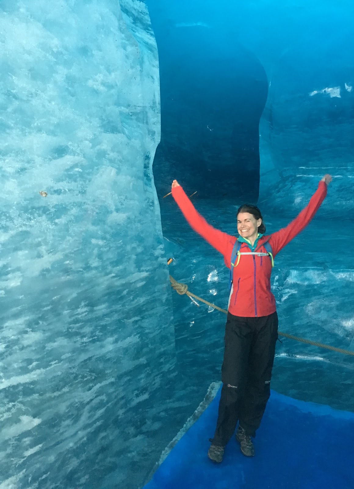 As the sun tipped over the horizon, the gate was opened and we jumped down the steps to the entrance of the Ice Cave that has been carved in the glacier for tourist visitors.