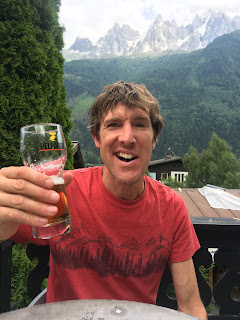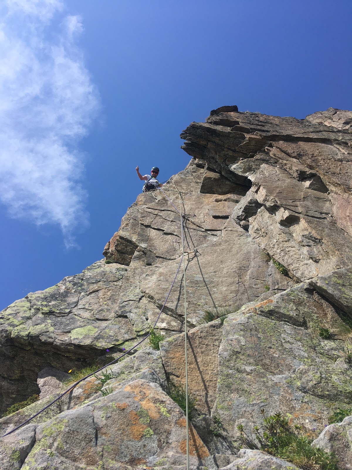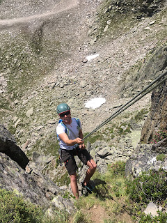 We climbed two more final pitches, before calling it a day and descending on the lifts, where Clare met us for a drink, where we toasted Andrew and Sarah’s 25th wedding anniversary!