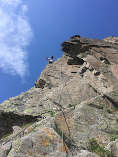 Out of bed and straight up to 2525m! But this time with nothing in the way of physical effort. We went lightweight with small rucksacks, intent on climbing as much rock as possible before the last lift back down to the valley.
