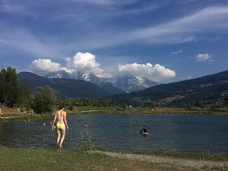We met Clare in Chamonix, having caught a bus into town. Here we transferred into the car and all drove down to Lac Passey for a super refreshing swim. It was 36 degrees down there and the water was bliss. Then to finish off an splendid day, we went for Burgers at South Bar before finally falling into a deep sleep. Fabulous…