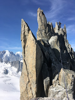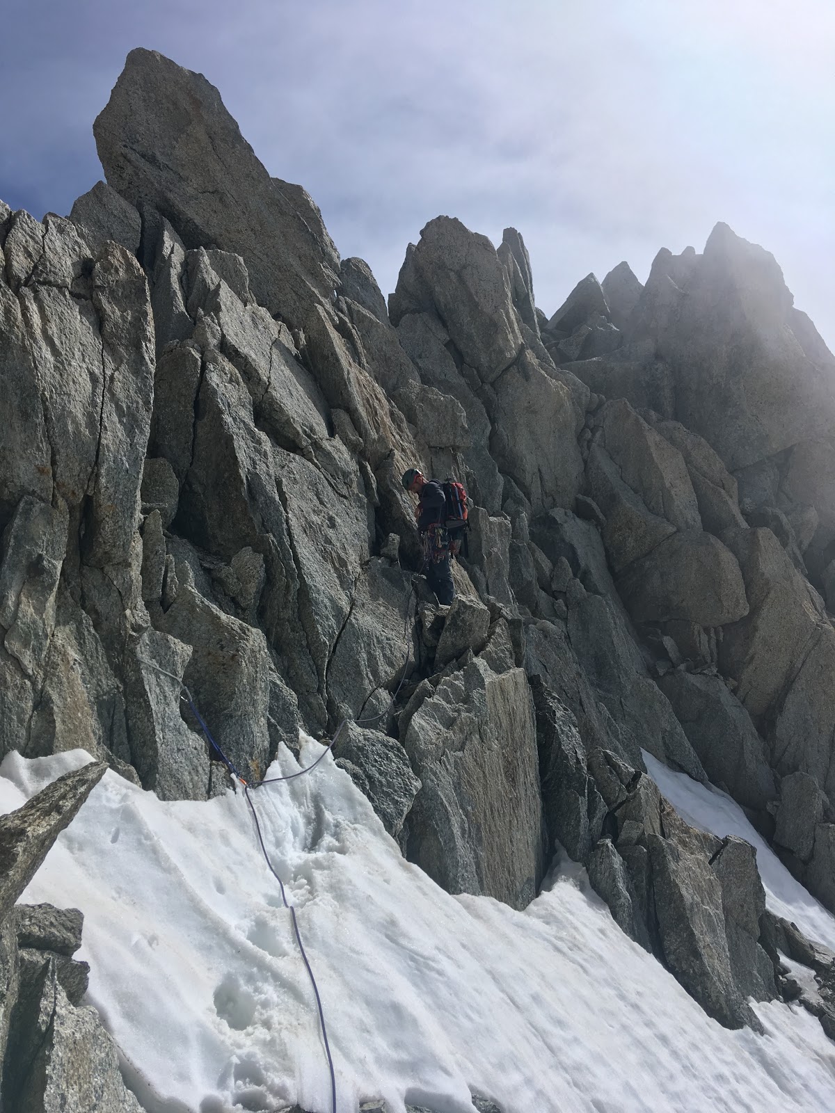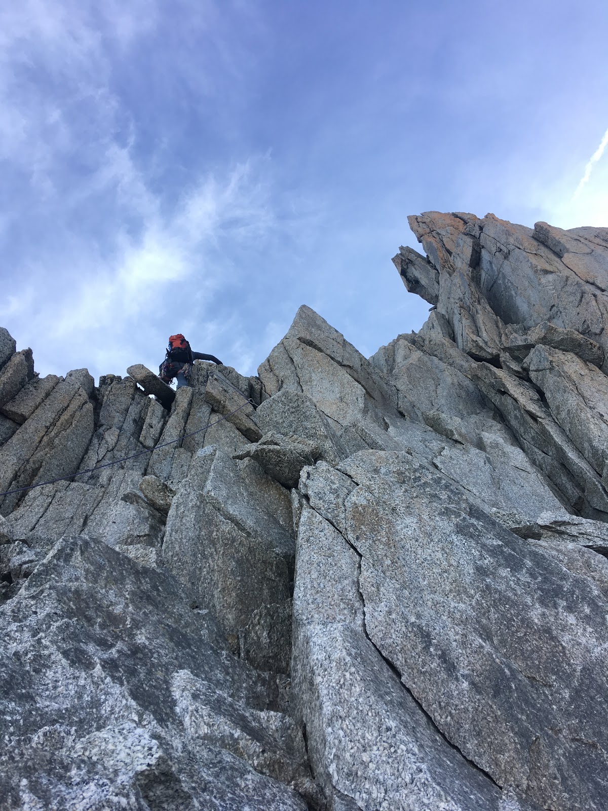 The crest of the ridge continued in a spectacular style, with steep fins of rock and big drops off either side.