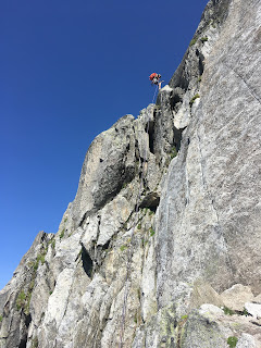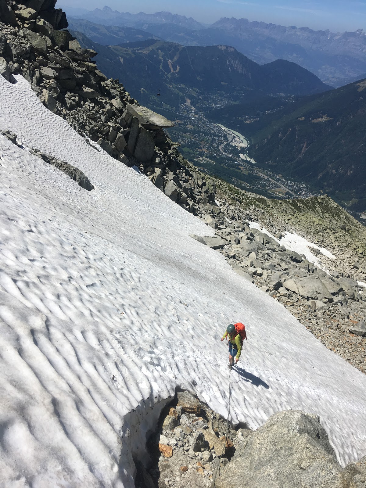 Without walking back to Chamonix, there wasn’t time to climb the intended route, so we continued abseiling.