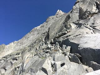 We also located the correct walk in, which was much less loose than the route up we had taken. Looking back up at the sea of granite, it was little wonder that we hadn’t found ‘the bolt’ that marked the start of the climb!