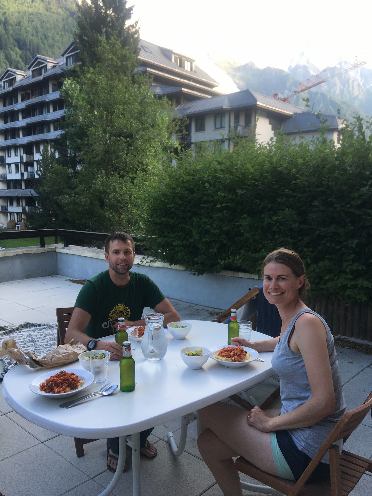 Back in the valley, the heat was intense, but shady enough to enjoy dinner outside as always. (Since arriving here, we not eaten indoors yet).