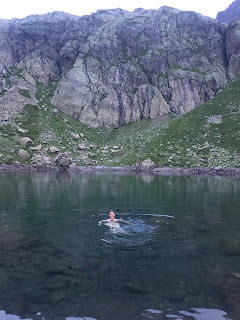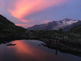 Mirror calm, with incredible view and not a soul about. Even as it went dark, we were warm enough for a quick drip to freshen up from the sweaty hike.