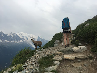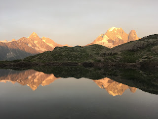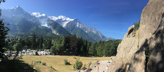 This normally busy trail (part of the Tour du Mt Blanc), was quite and cooler, at 18:30 when we set off, so much more enjoyable. It’s uphill all the way though. We stopped off at the ‘Aiguillette’, which we climbed on a previous visit about fifteen years ago.