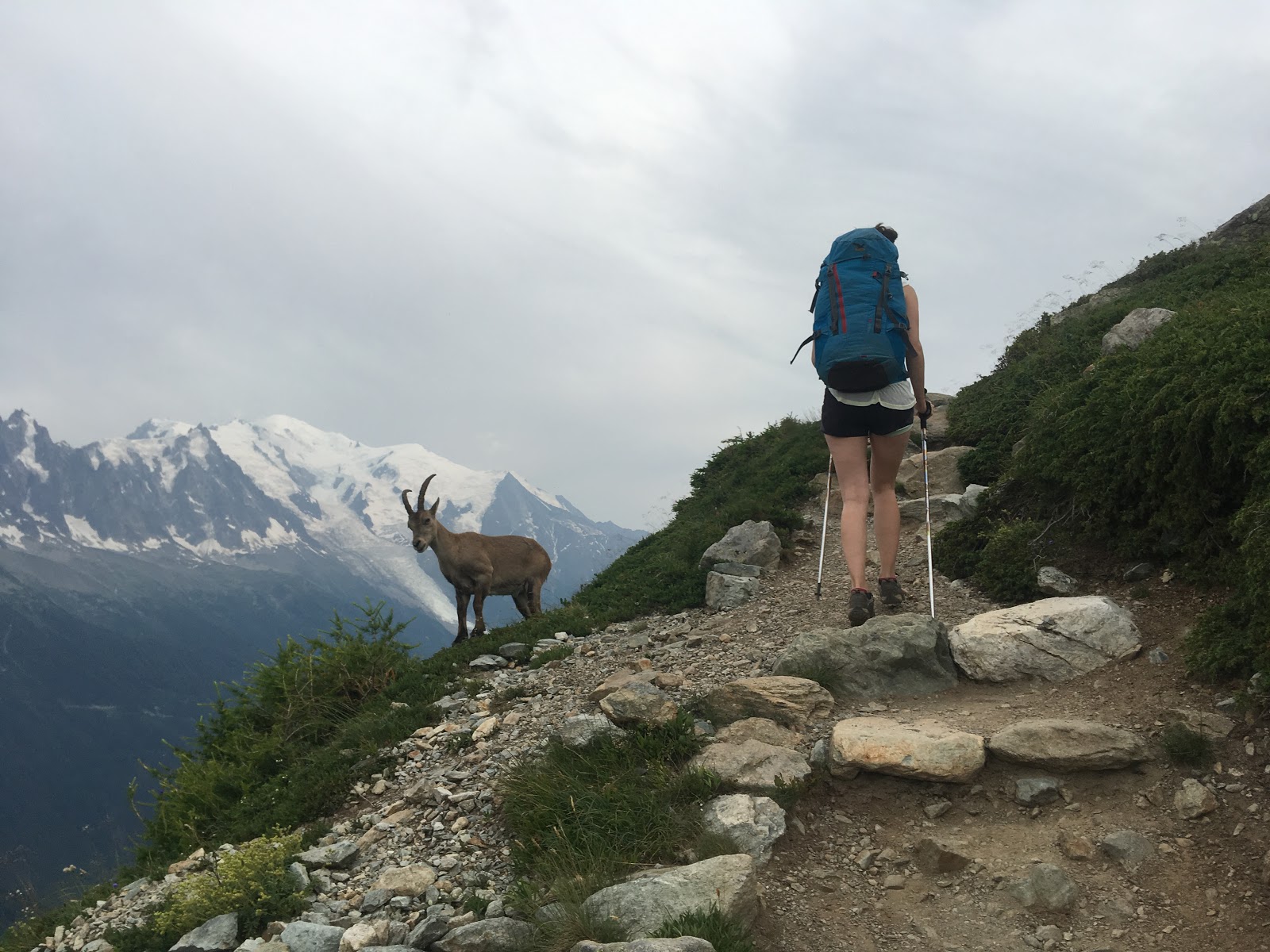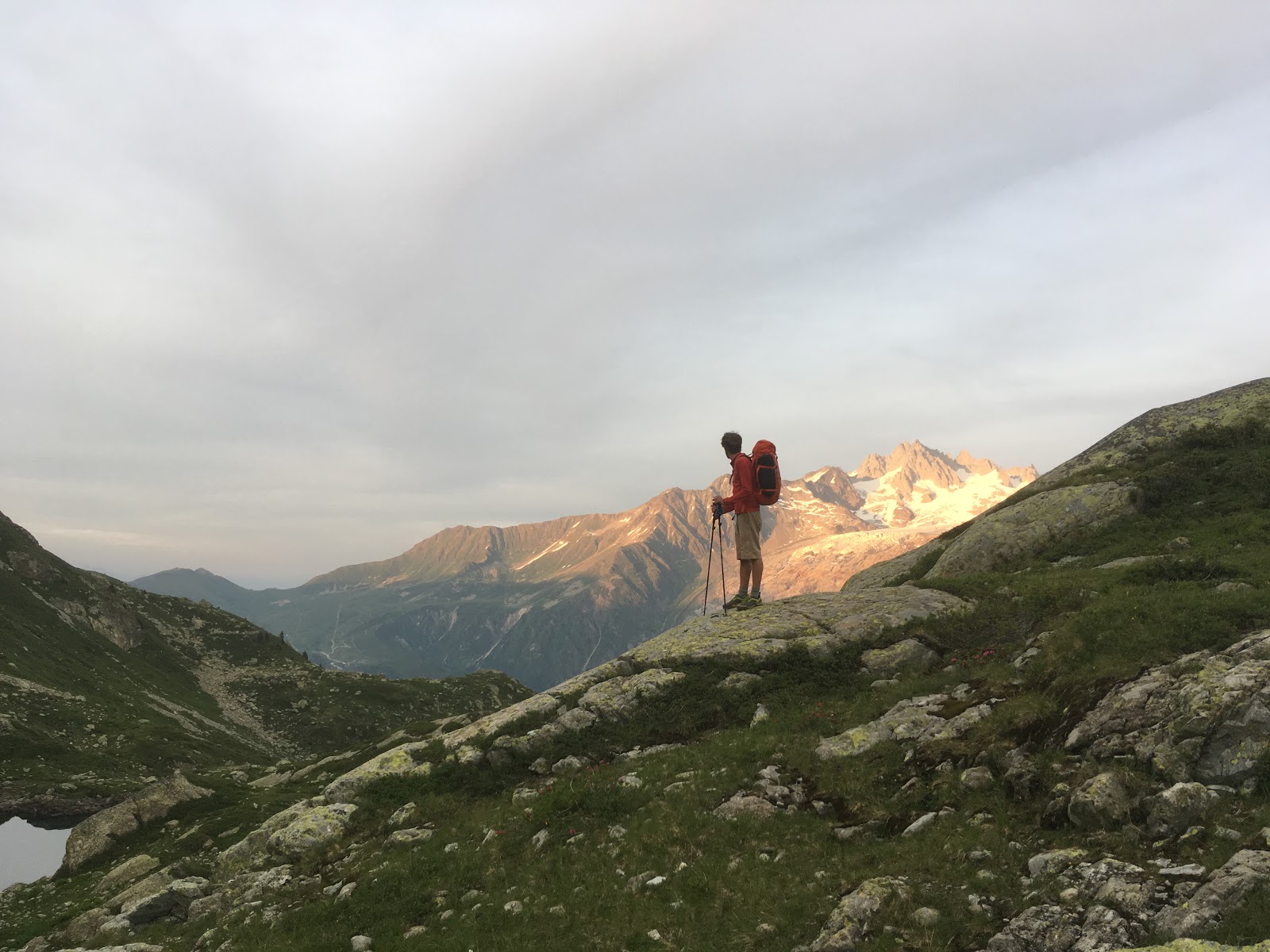 It was way too hot to set off anywhere in the afternoon, so we waited until evening before setting off on a little bivi adventure along the famous ‘Balcon Sud’ foot path that traverses the hill side above Chamonix. We actually set off from Le Tour, not Tre-le-Champ as we caught the wrong bus. It added an extra kilometre of hiking and a bit of sweat, but it was always going to be a sweaty evening!