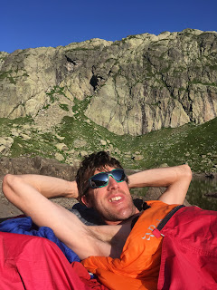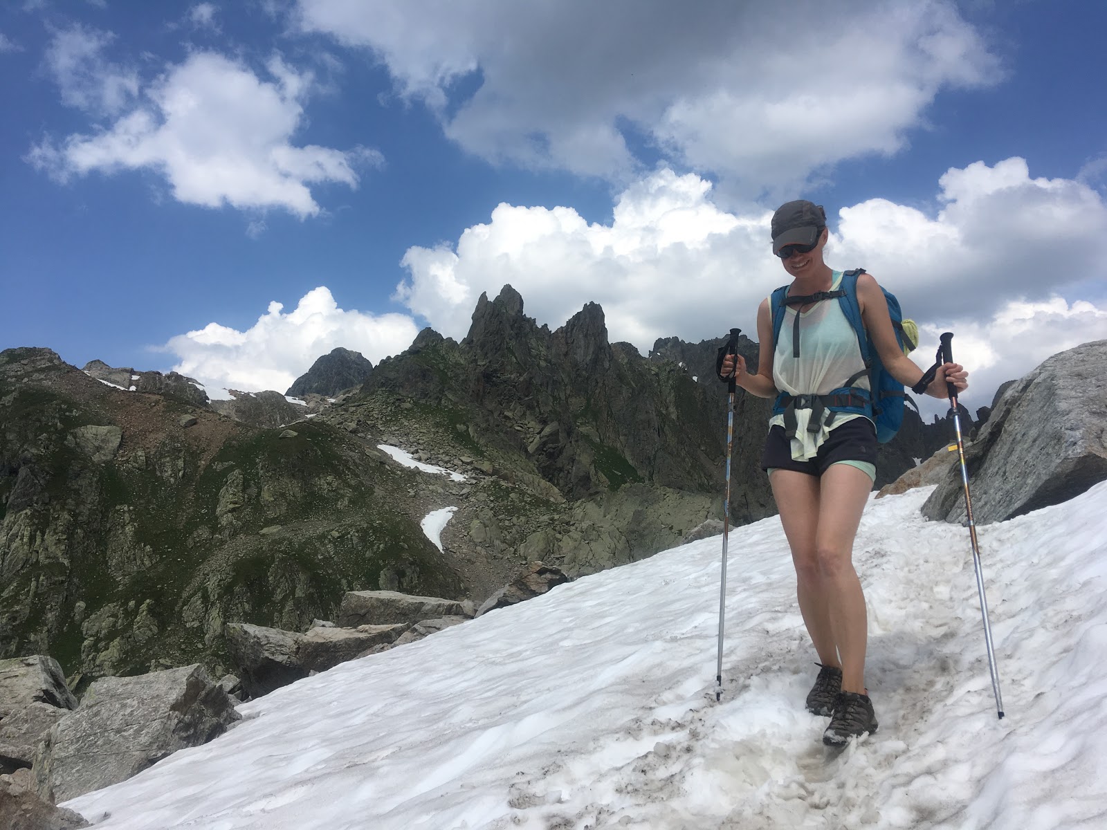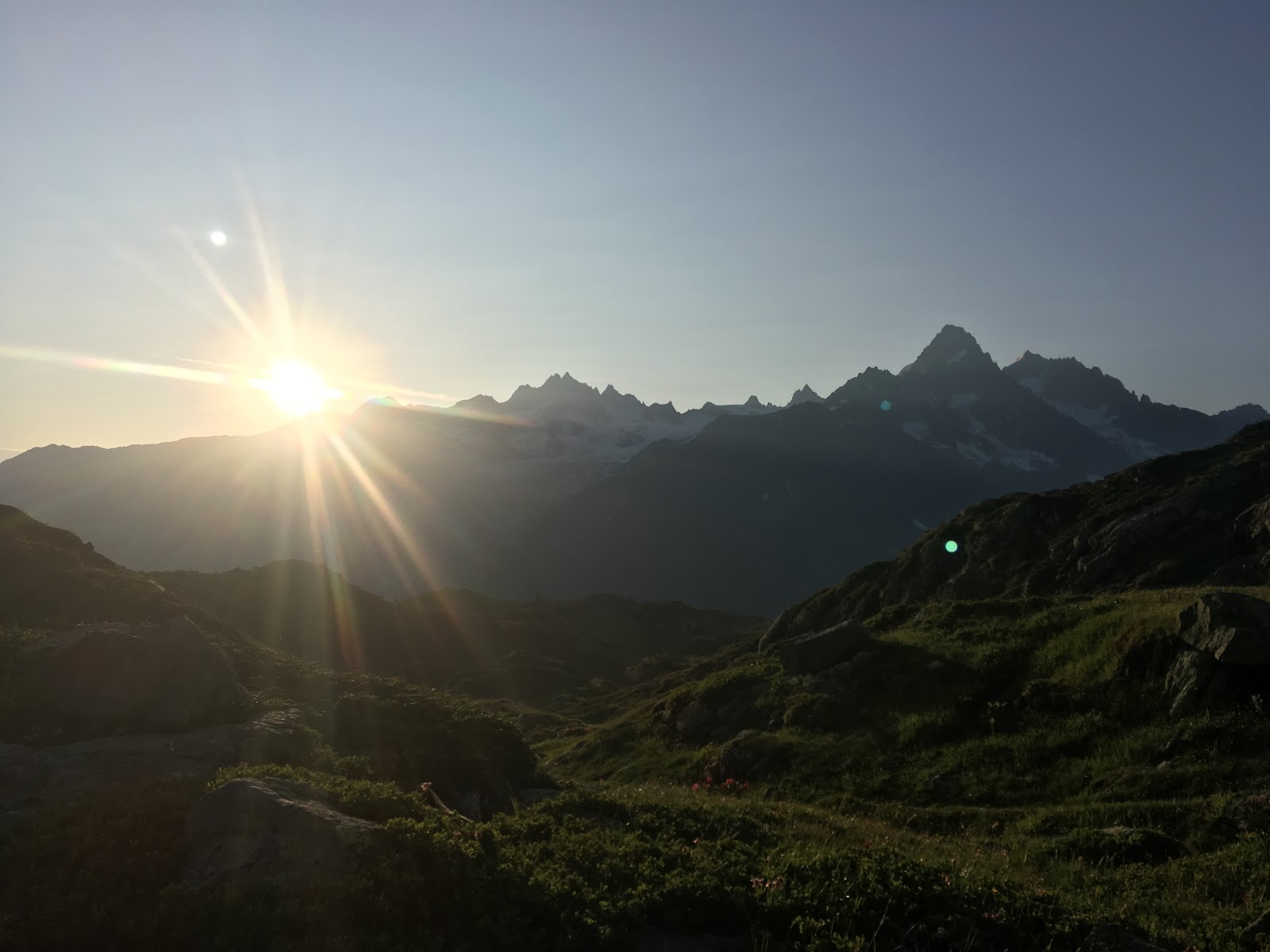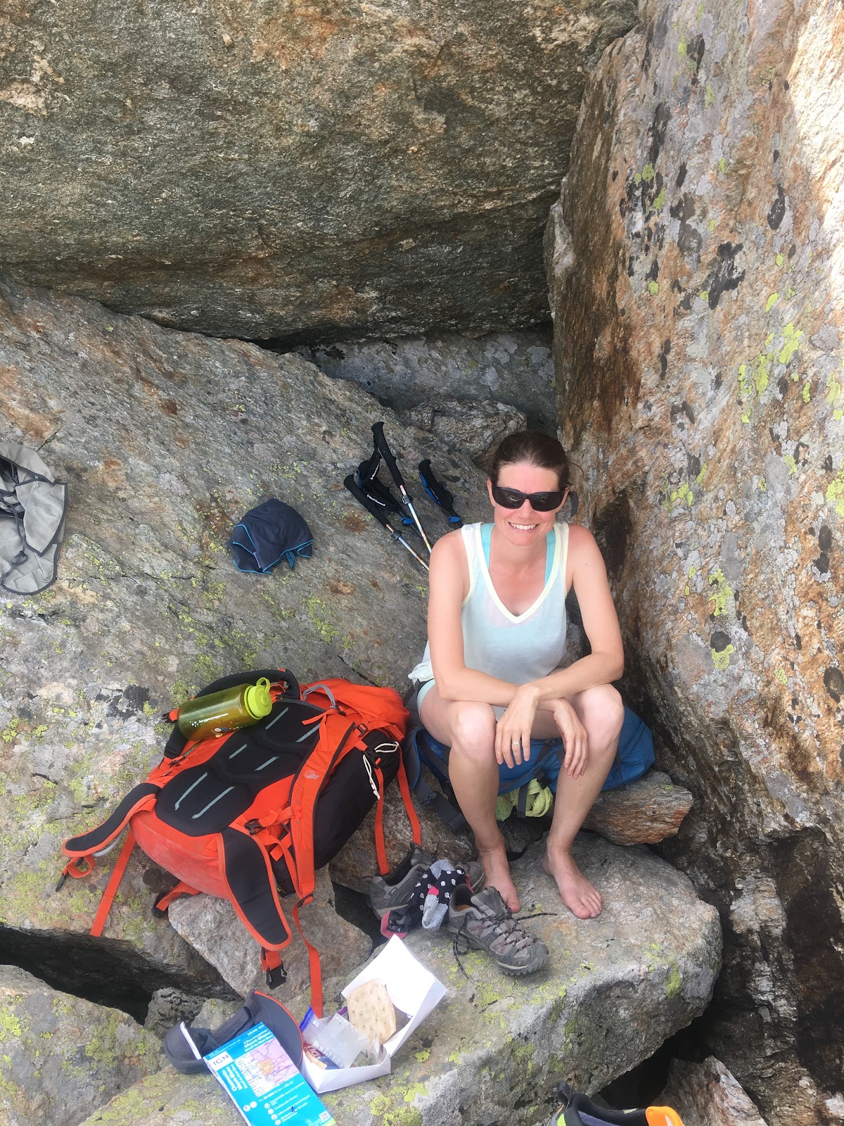 The final climb up to the Col d’Cornu was almost unbearably hot. Even though we were at 2400m. We stripped off in the shade and ate the last of our food to recover before carrying on down to Planpraz.