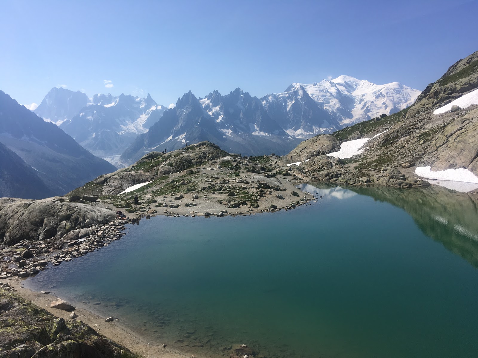 We soon reached the famous Lac Blanc, where this famous view is always photographed from. It was a beautiful view, but unlike first thing, we had to share it with other trekkers.
