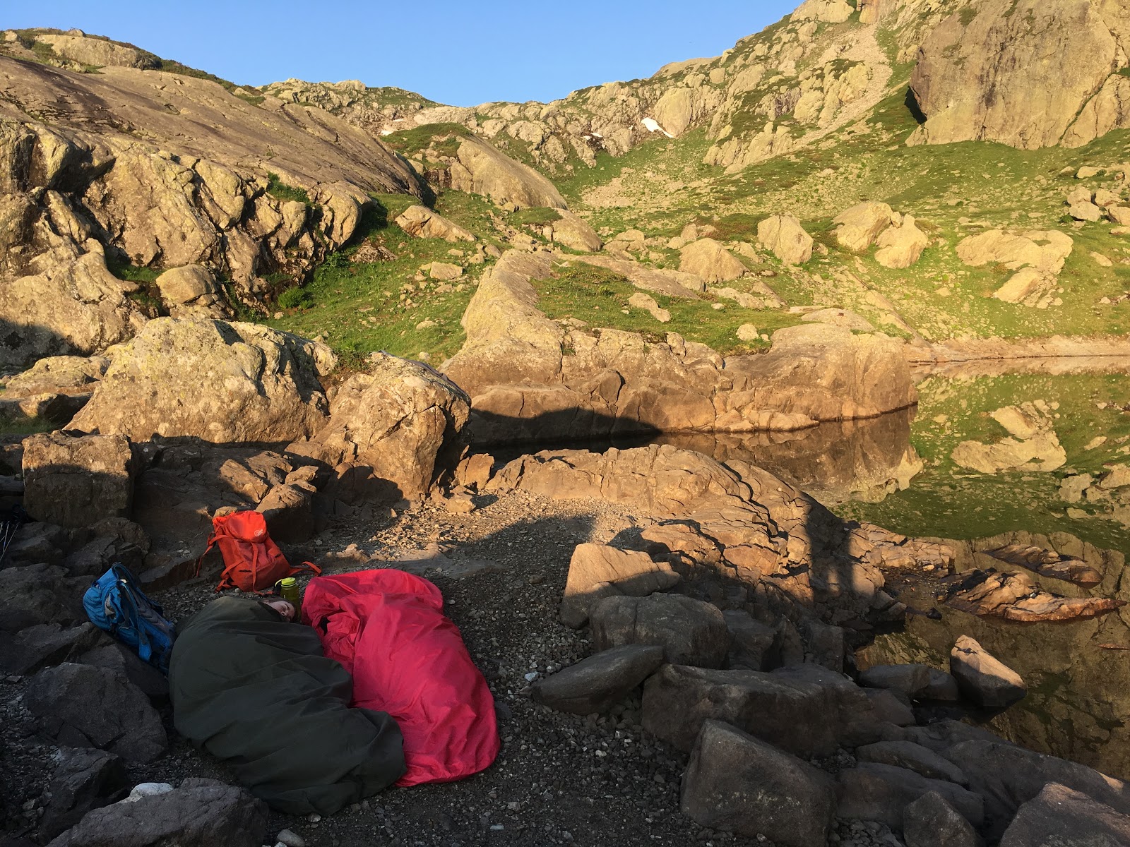 After an comfy and warm night, the lake was mirror calm.