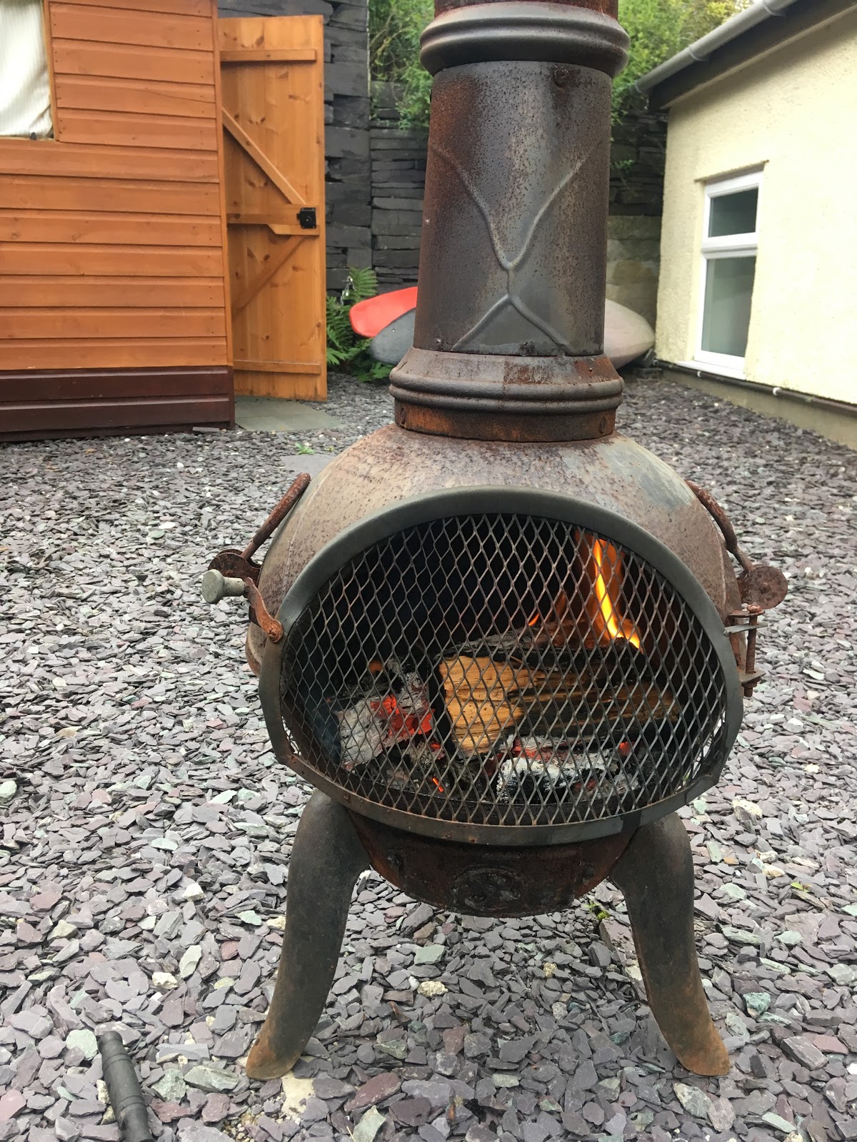 Back at base, we tried to prolong the summer vibe, with some al fresco dining, but no sooner was the chiminea lit, raindrops started falling again!