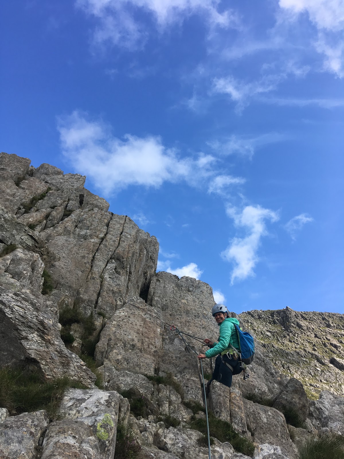 With lightweight packs, we hiked up above Cwm Idwal to the sunny Cwm Cneifion.