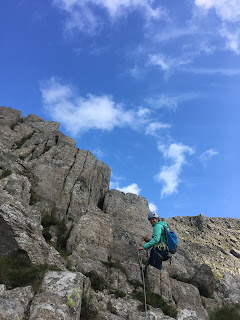 Using our alpine skills, we pitched the first steep section and then moved together along the knife-edge gendarmes and flakes that make up the crest of the route.