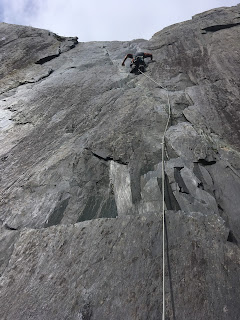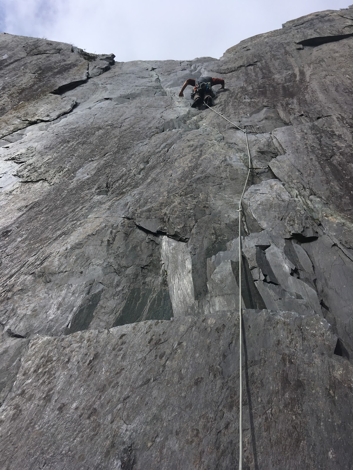 Given the recent damp conditions, I’d decided to assign most of the day to computer-based projects. However, Aled and I decided that there could be a ‘weather window’ just after lunch, so nipped out to Dinorwic to try our luck. The slate is famous for being quick-drying, so we were able to climb two good routes. I’d just tied in and was stepping off the ground when the heavens opened and we ran for the cover of the van. It was good while it lasted and worth the punt!