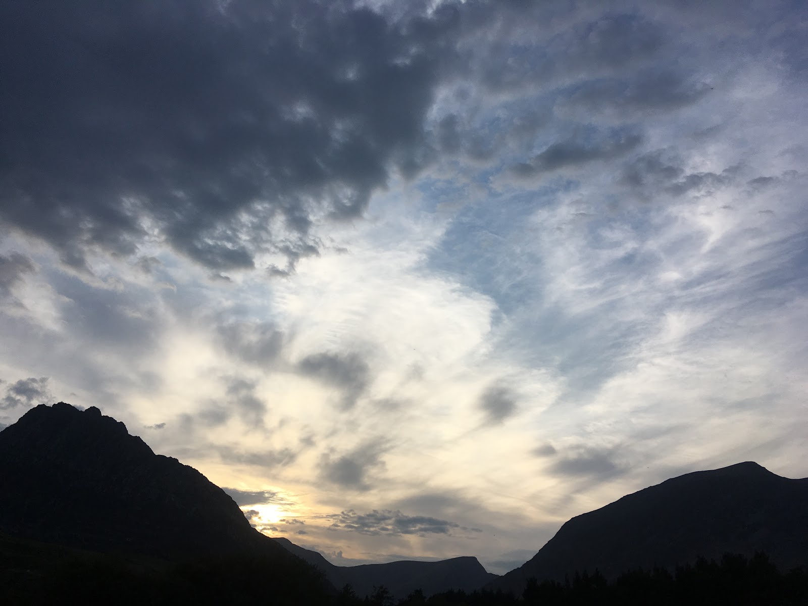 A fine weekend for the first Duke of Edinburgh’s Award expedition of this term. I was working with John and we’d cunningly placed his van at the camp area, pre-expedition so that we’d have some major camp comforts. As such, we enjoyed some fine dining outside with camp table and chairs as the sun went down behind Tryfan!