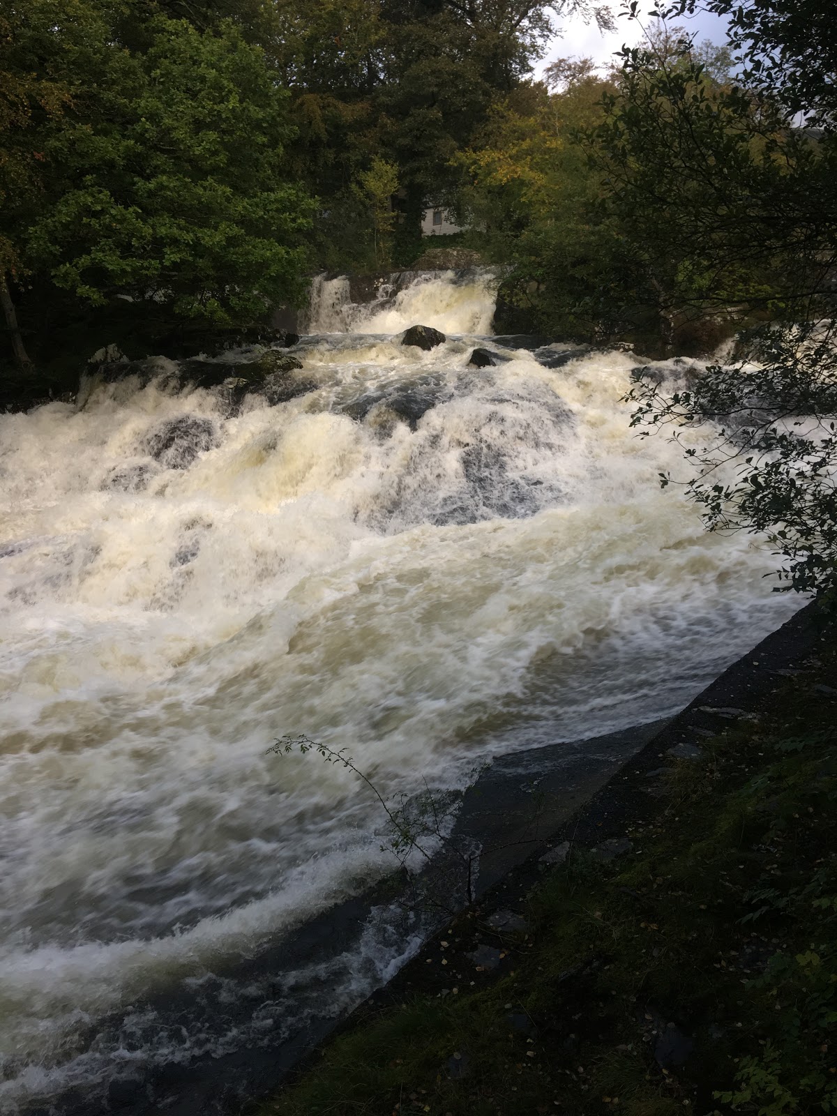 By evening, the rivers were all in flood from the days rain. Ogwen bank was in full force at 580 on the river scale.