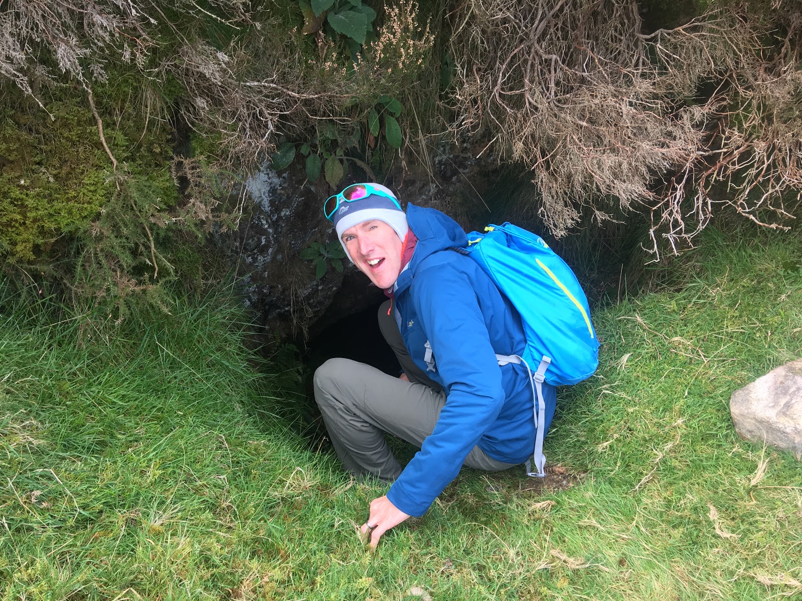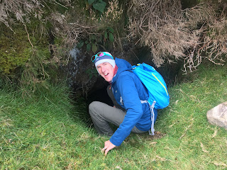 There is some rock climbing on the mountainside, so we checked it out on the way. It was very mossy and overgrown and looked like it was last climbed many years ago. The guidebook also mentioned a mine worth exploring too, so having found it I went for a quick nose inside.