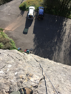 On Monday, we went up to Castle Inn Quarry as it looked like it would be sheltered from the cold winds. We were right and enjoyed the feeling of a Spanish rock climbing holiday in the warm sunshine.