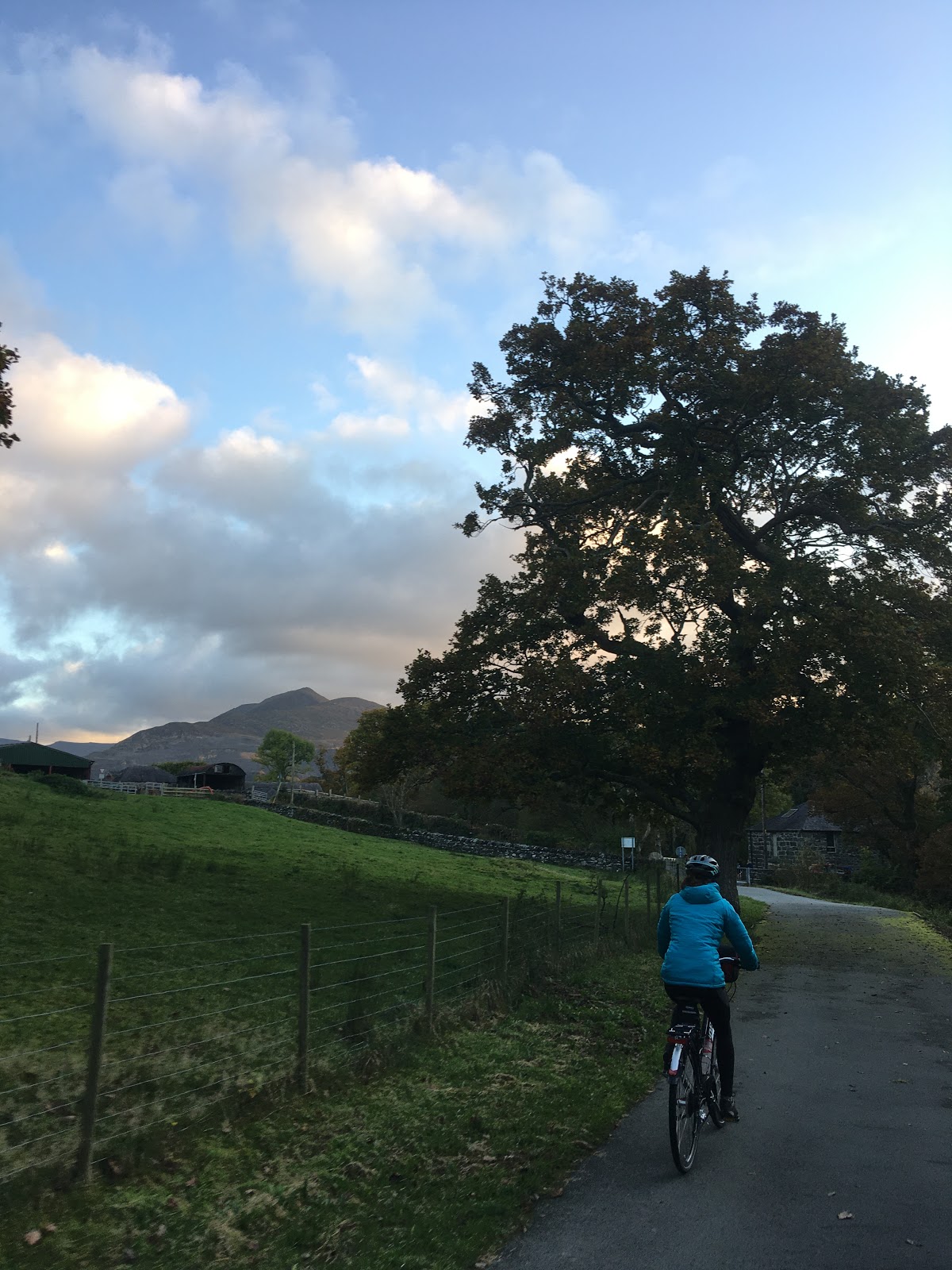 We didn’t quite get a frost, but out of the direct sunshine it’s very cold. Not rock climbing weather and barely cycle touring weather. We did go out on the bikes though, to visit friends and even had tea out on the sheltered sunny terrace in Rhiwlas.