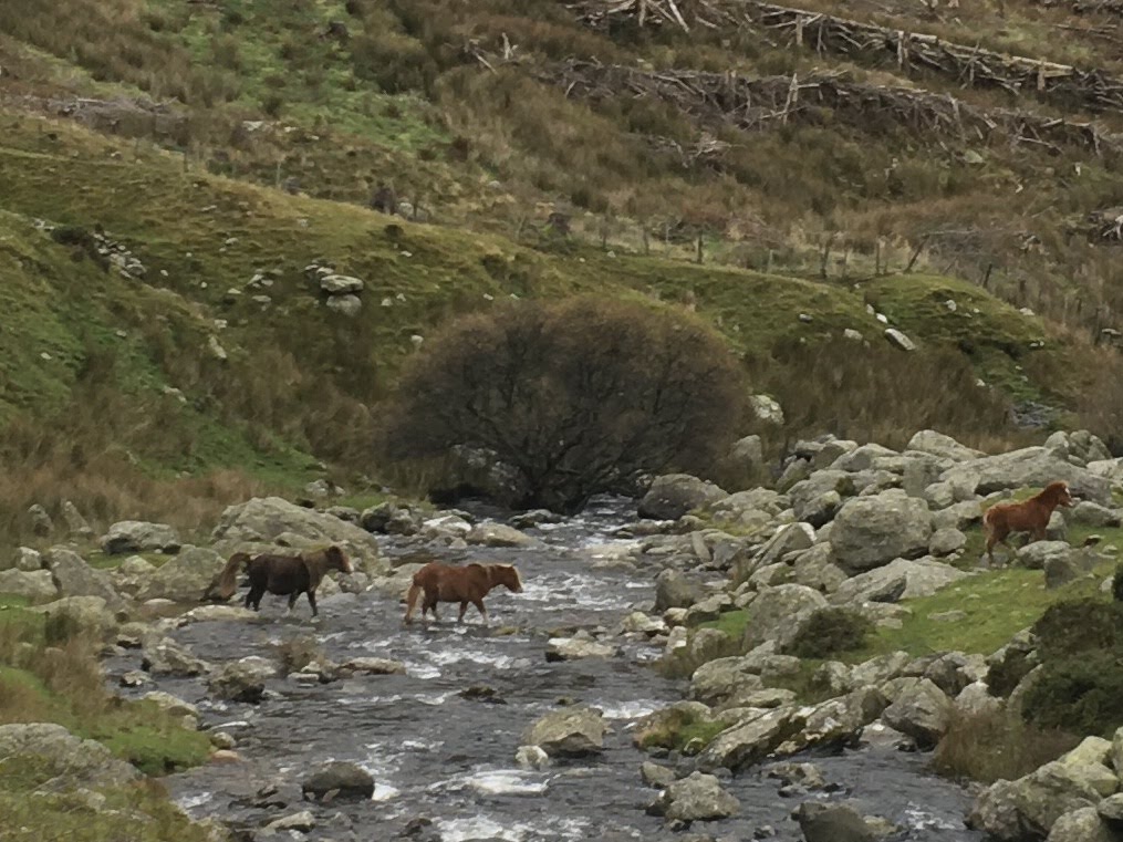 Went for an explore along the northern edge of the Carneddau today with my grou pof students. We didn’t have long or great weather, so stayed low by the shelter of thre river to start with. If felt a bit wild-west ish when a trail of wild ponies made a river crossing below us.