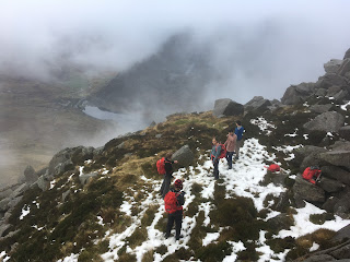 We descended slowly down the west face gully to the A5. I went on ahead to get the minibus and we were all safely off the mountain before dark.