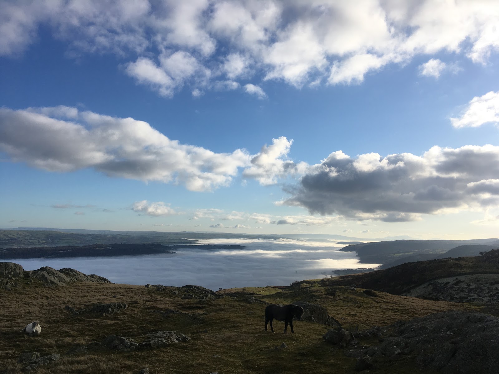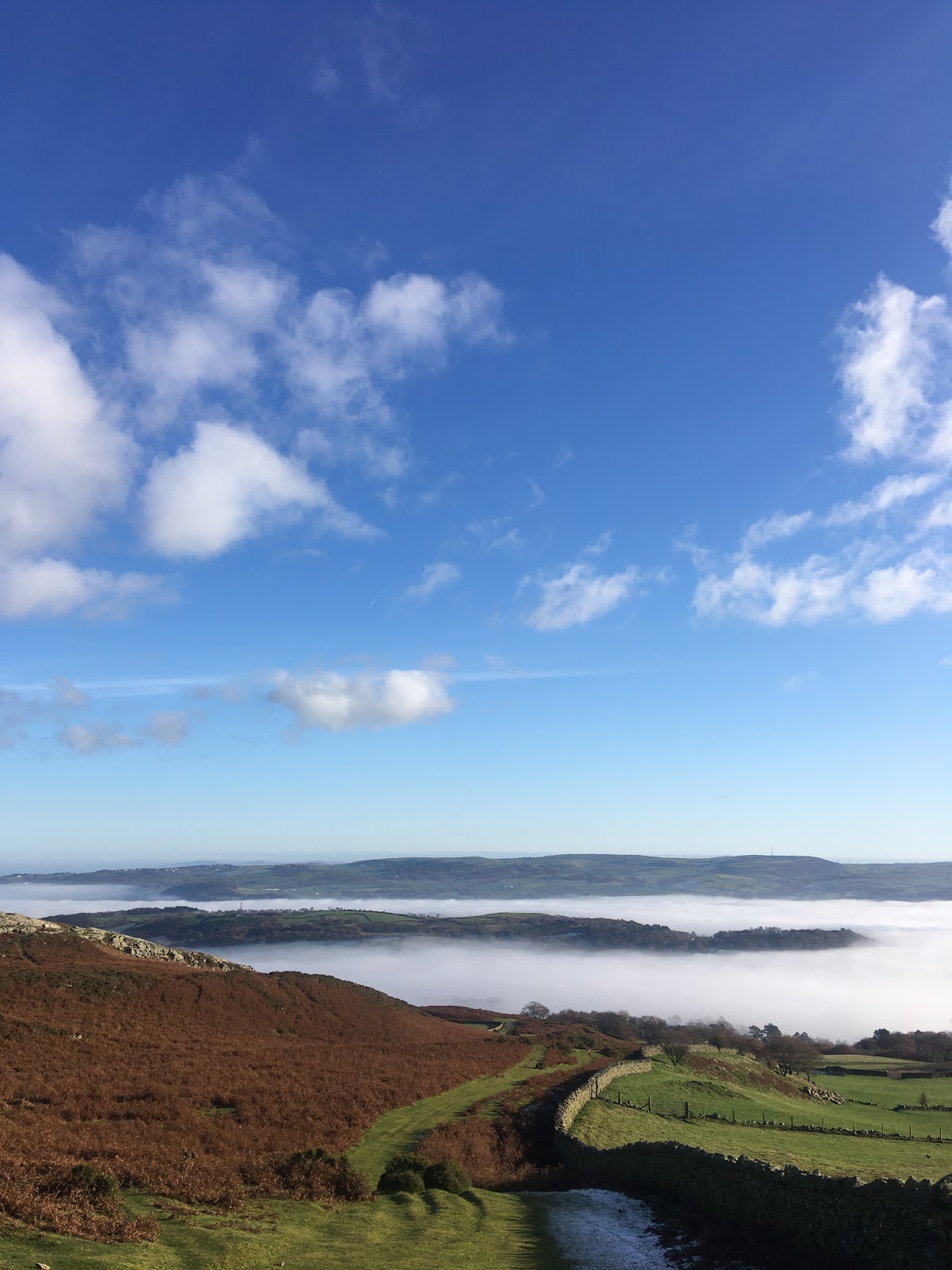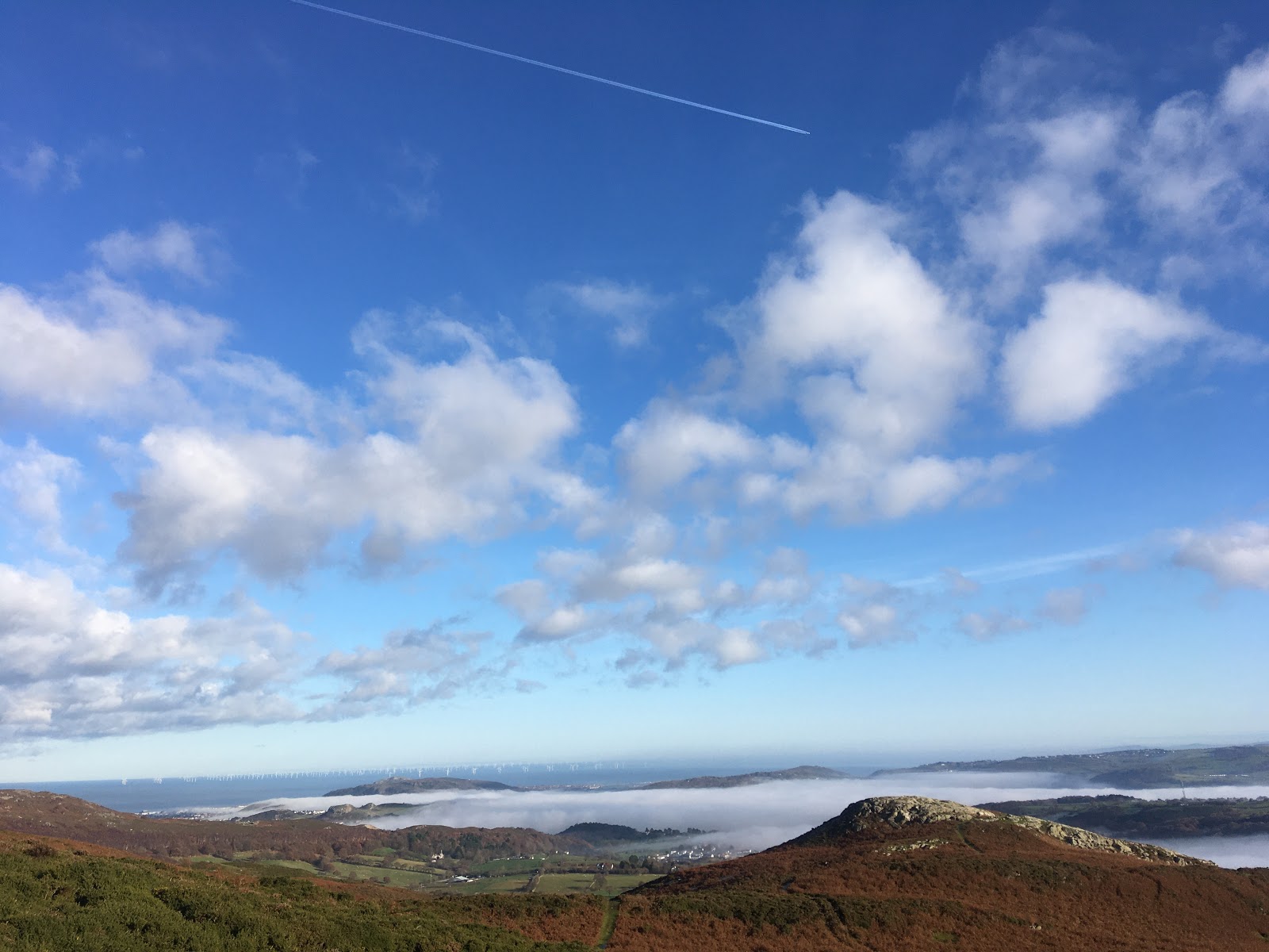 A thick bank of fog was flowing out of the Conwy valley and into Llandudno, so we adapted our plans, so as to walk along the hillsides above the cloud.