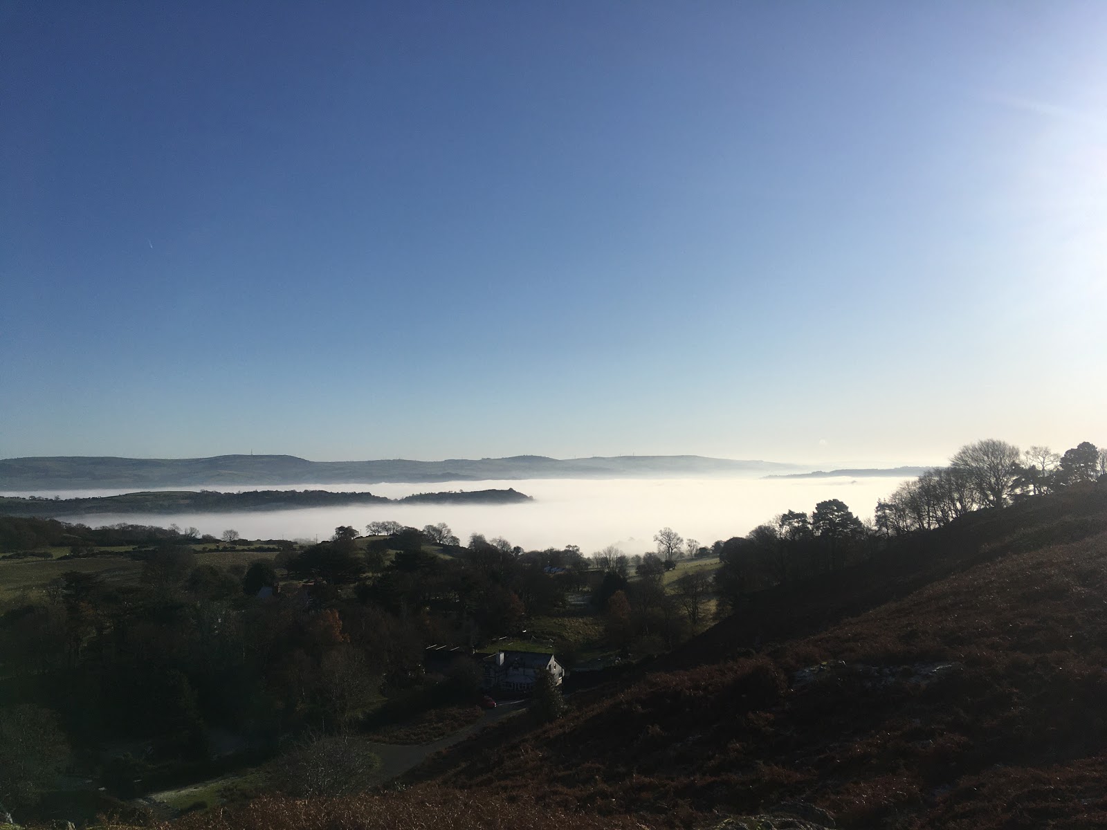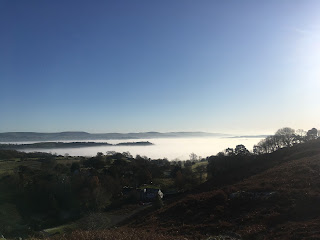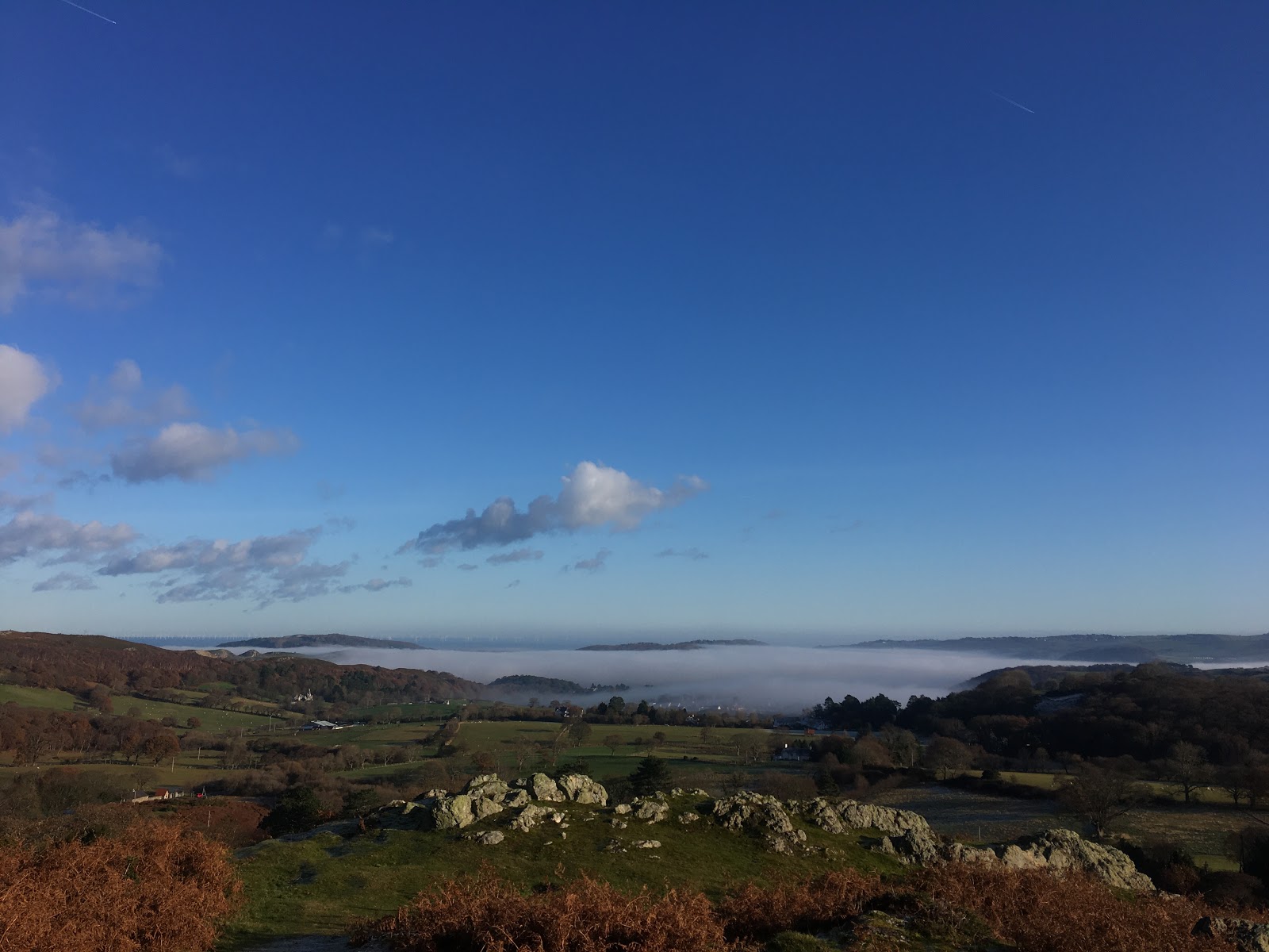 While the people of Conwy were held in the grip of a thick icy fog, we were basking in the sunshine on the hills above them!