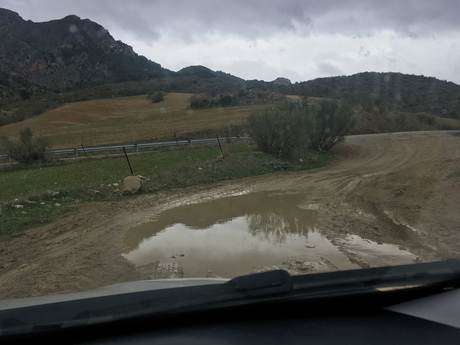 Luck was on our side once again. Having negotiated the muddy track and got the Fiat Panda back on the tarmac and insurable ground, we headed home. The road wiggled and wound around the hillside and once we were back near Ardales, the road was already wet and the rain began falling. Perfect timing…