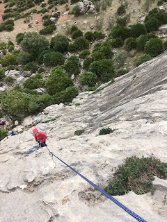 We climbed a two pitch route to start, although I bailed out of completing the final moves as it involved some very balanced moves, which I decided were unnecessarily adrenaline inducing given the buffeting wind.