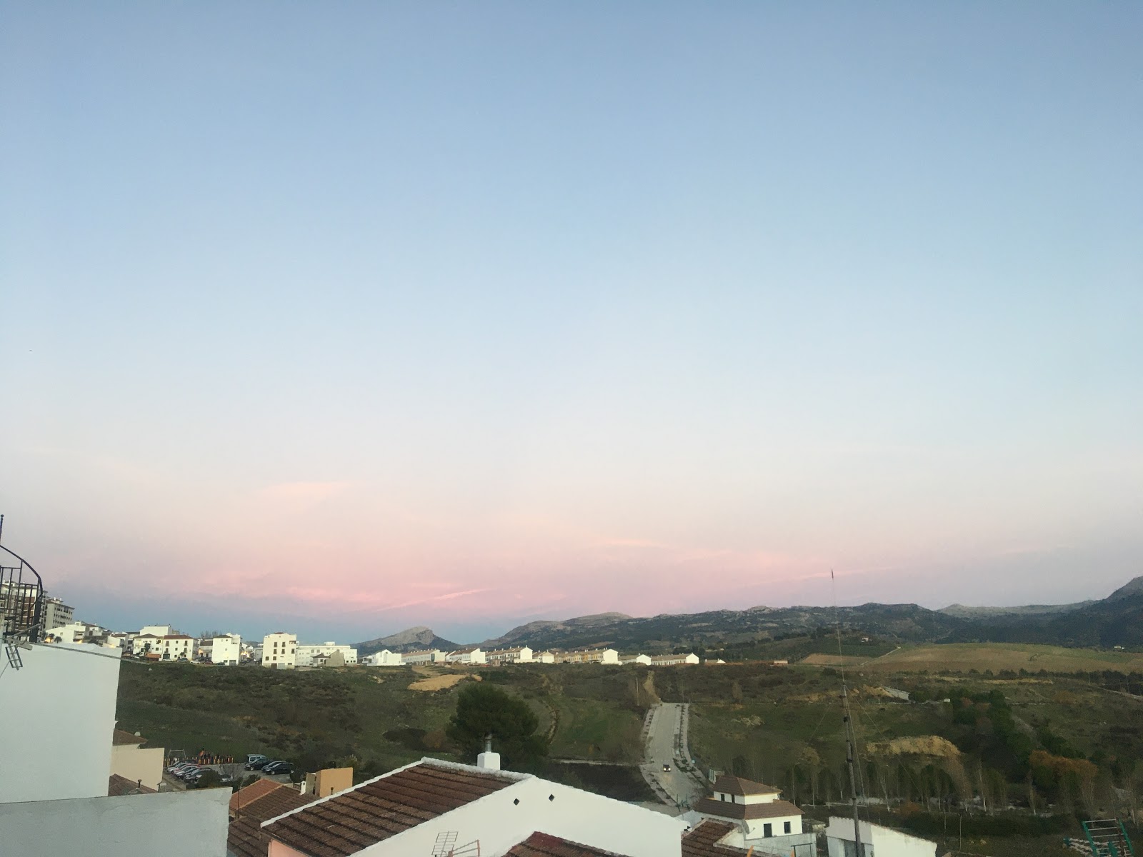 By the time we’d completed our site-seeing and arrived back at the pad, the sun was down and the sky turned a lovely pink colour. The longer daylight hours are one of the benefits of being this far south. It’s light until after 7pm.