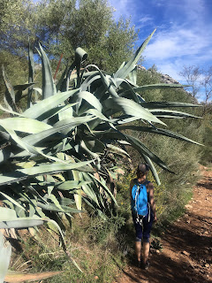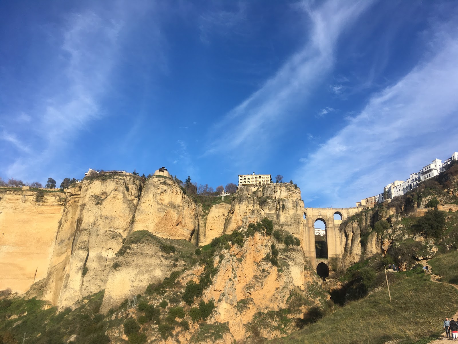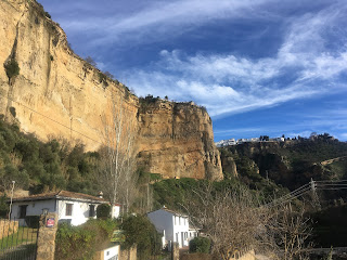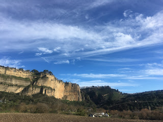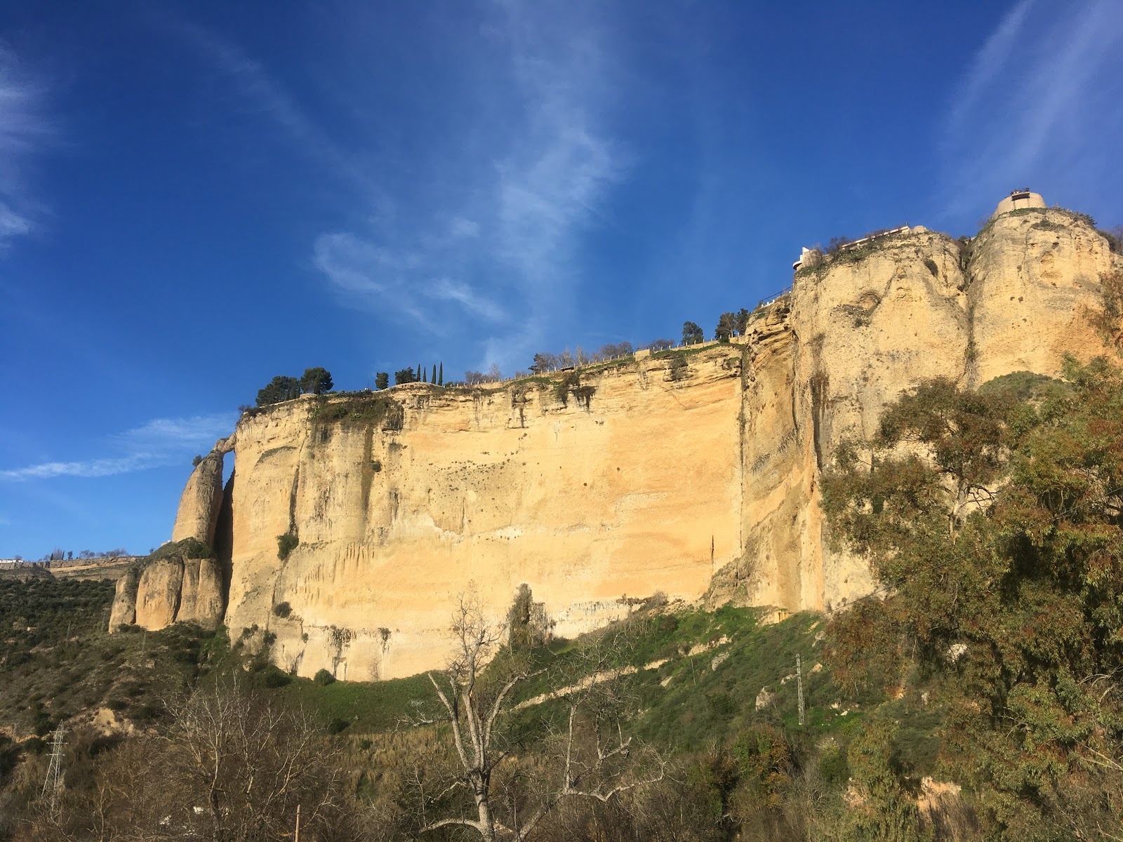 Having followed the river and railway for a while, another short climb took us up over the rise and to within sight of the cliffs of Ronda.