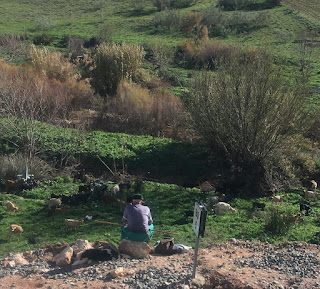 While we were sat on the wall, a friendly farmer came by, herding a small flock of sheep. He was keen for a chat but we were all lacking the skills of a common language. We all smiled and laughed as he went on his way.