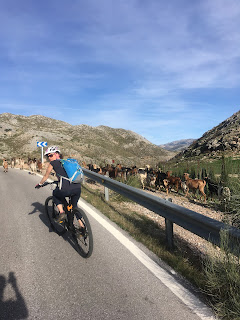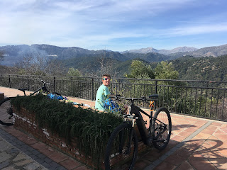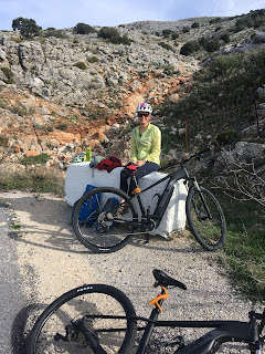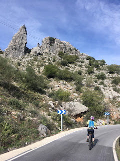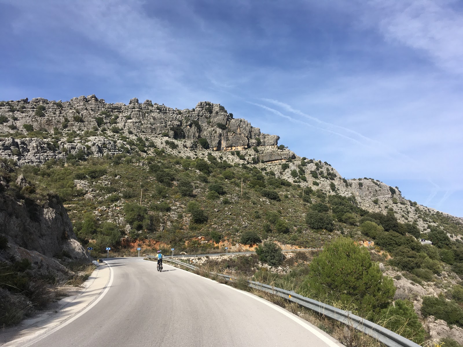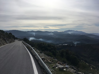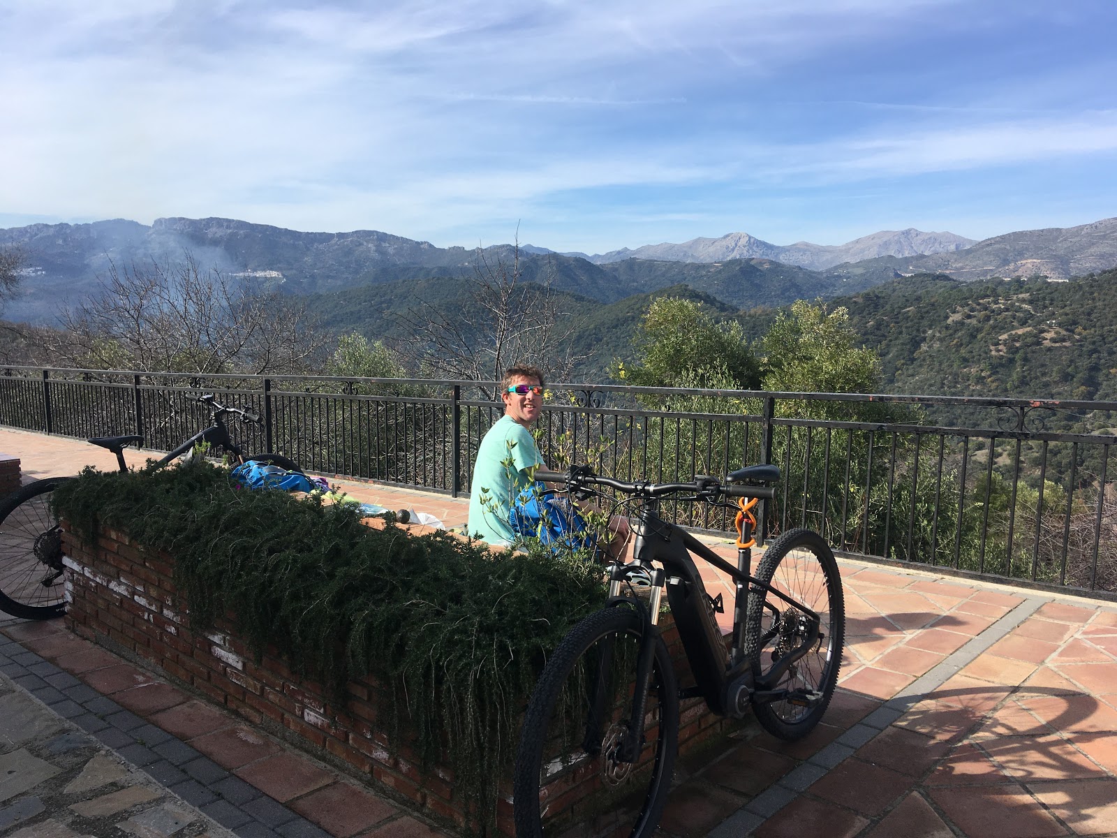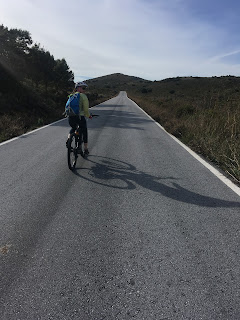 On Jesus’ reccomendation, we headed south out of the city, where the long and winding county roads have perfectly smooth tarmac and virtually no traffic. It was biking bliss – especially on the uphills, where the eBikes purred encouragingly upwards! We stopped at a high col for a snack and beyond us the views had opened up, revelling some wild terrain.