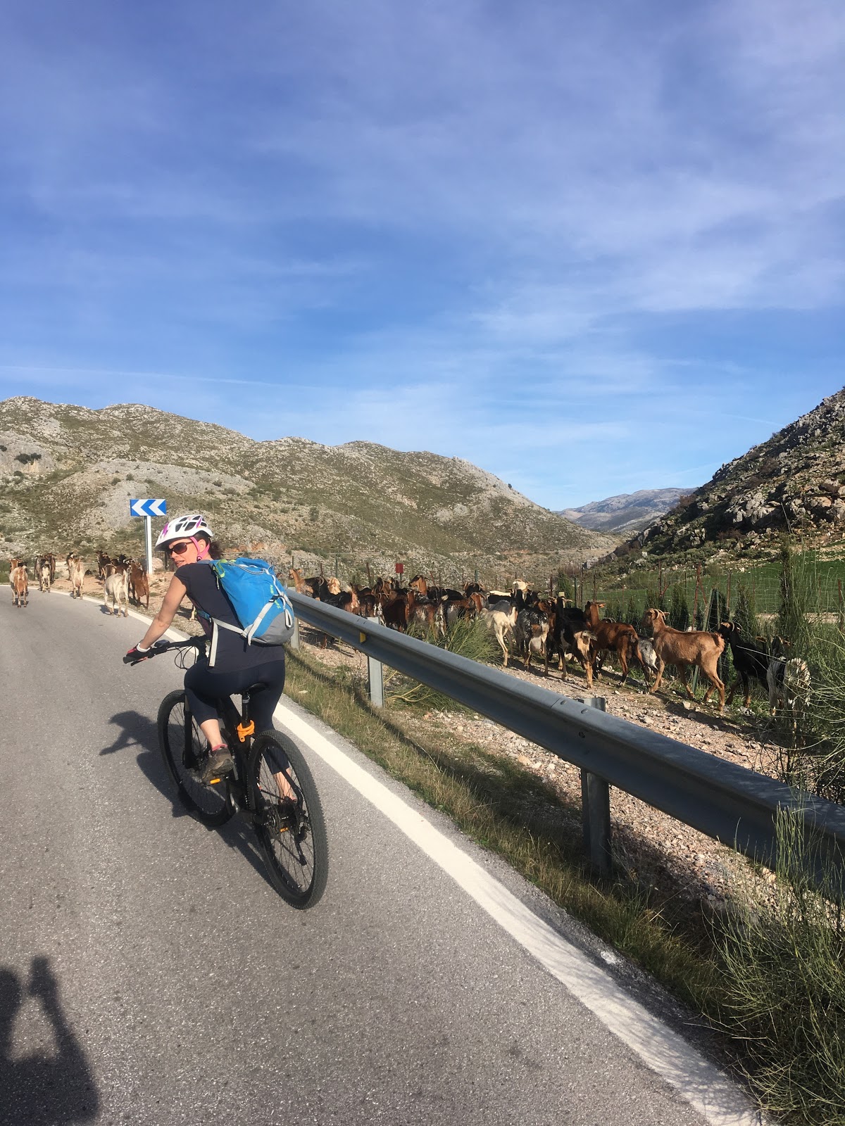 After negotiating a herd of goats that we being shepherded across the road, we were delighted to catch sight of Ronda, in the distance. It looked to be downhill virtually all of the way! We were literally whooping with a heady mix of excitement and adrenaline as we rushed downhill at maximum speed for the next 10km or so.