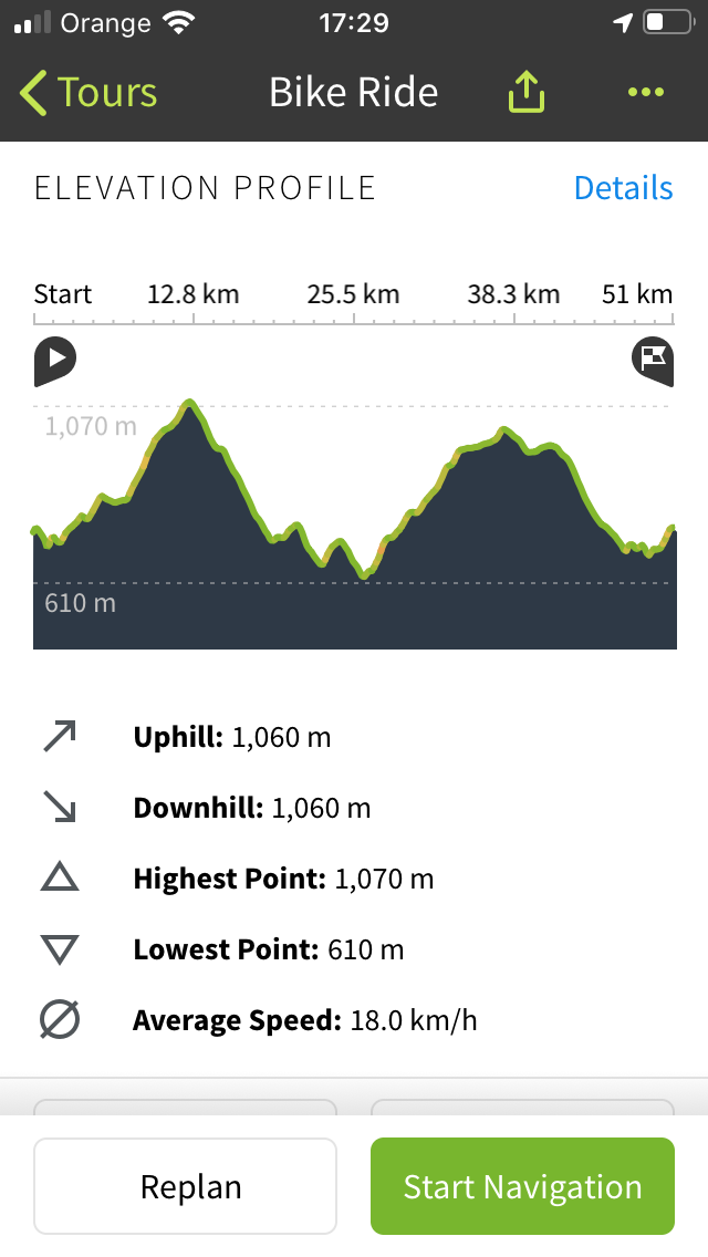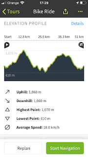 Clare’s phone had recorded the stats of the day – 51km and 1060m of height gain!