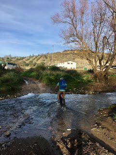 In order to avoid the final main road into Ronda, we took a chance on a smaller trail which unfortunately involved a rather deep ford crossing. We weighed up the terrain, calculated speed and feeling confident, I decided to go for it.