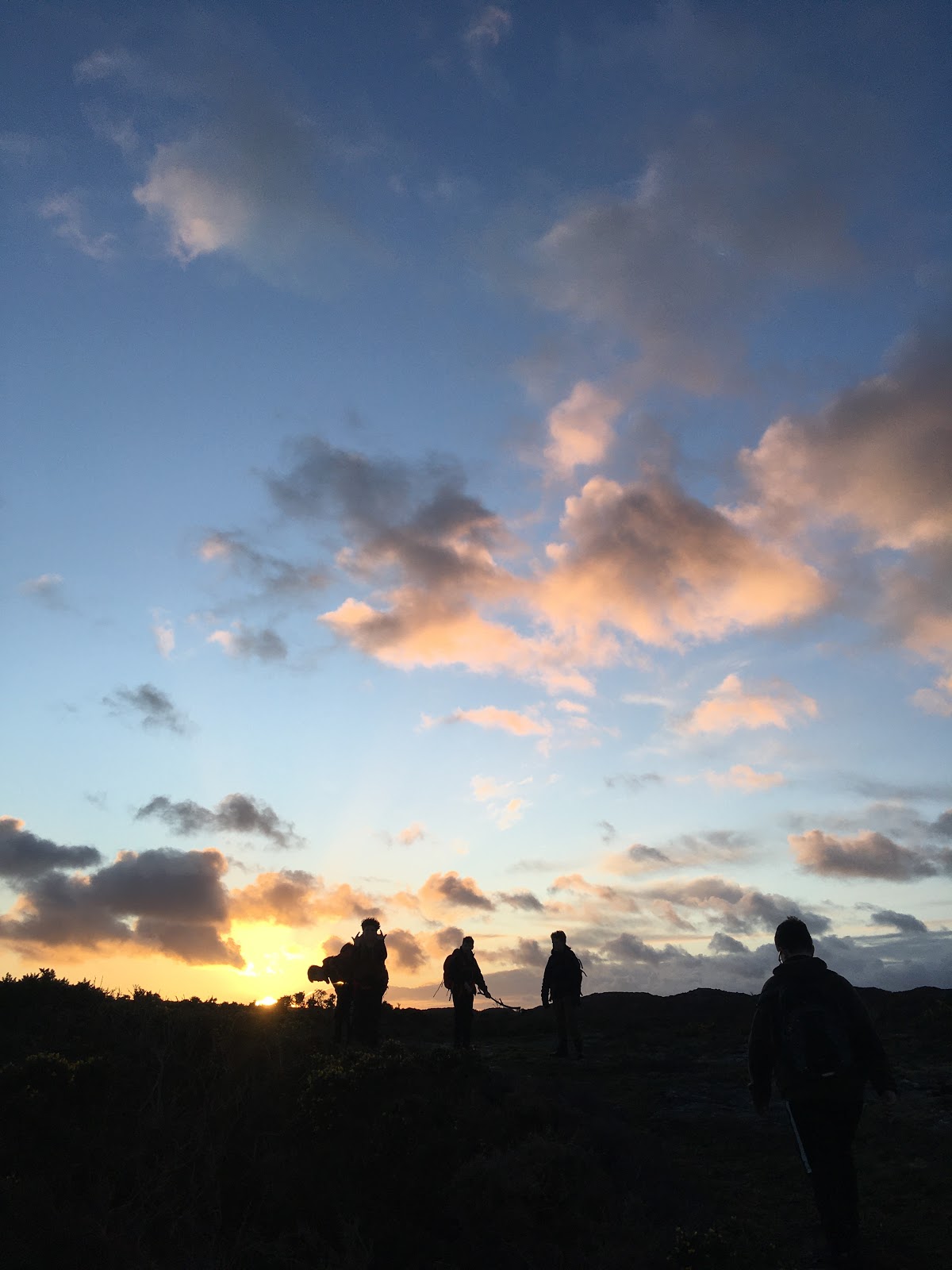 Digging deep, (and unable to magic up the requested caffeine boost), we pulled together the required mental and physical resources to make it in time for a much needed hot dinner, without (just) needing to use our torches. Some of us were even able to marvel at the colours in the sky.