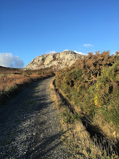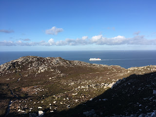 We watched the ferry pull out from Holyhead harbor and head off towards Ireland, which was visible as a silhouette on the horizon, from our summit lunch spot.