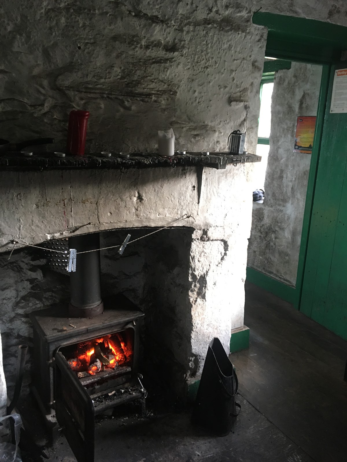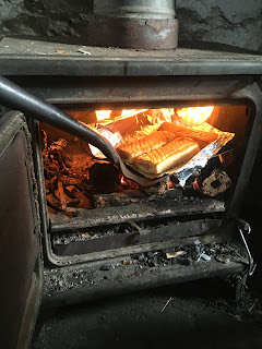 Using the wood we had carried up, we set about getting the fire going, brew hot drinks and warming up our sausage rolls. Happy days.