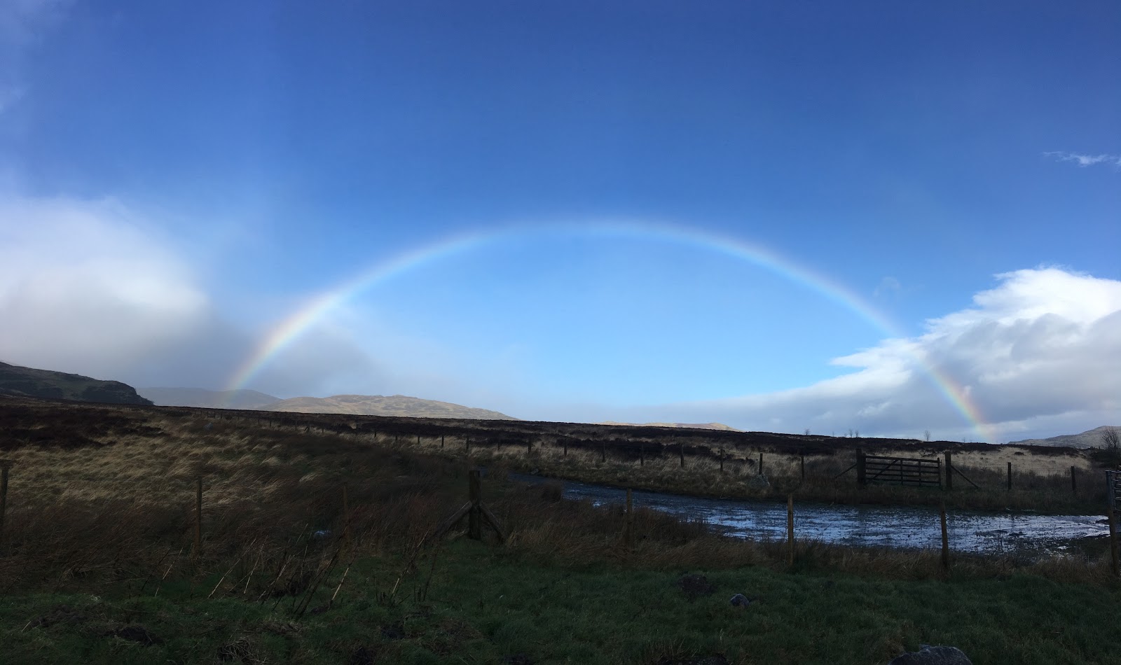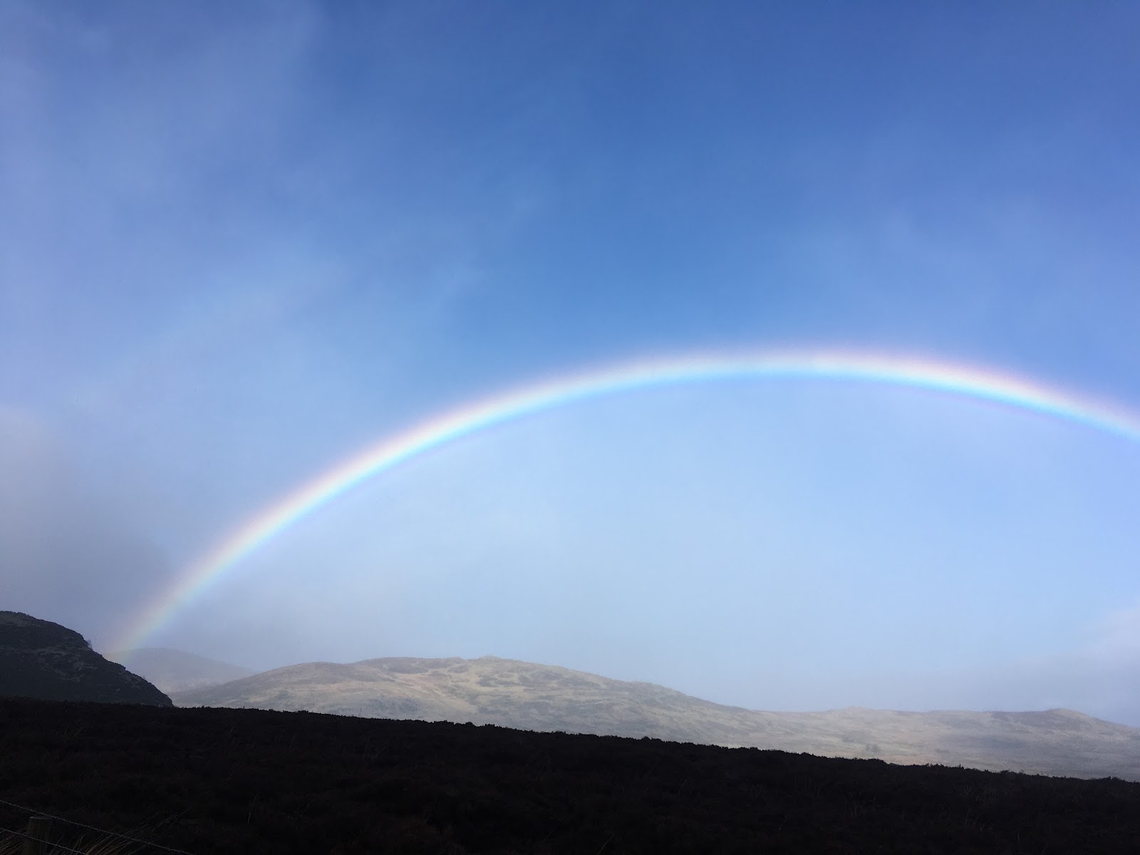 By the time we set out, having waited for the worst of the rain to pass, we seemed to be right on the edge of the rain/sun divide. And for our efforts, a fantastic rainbow hung over us.